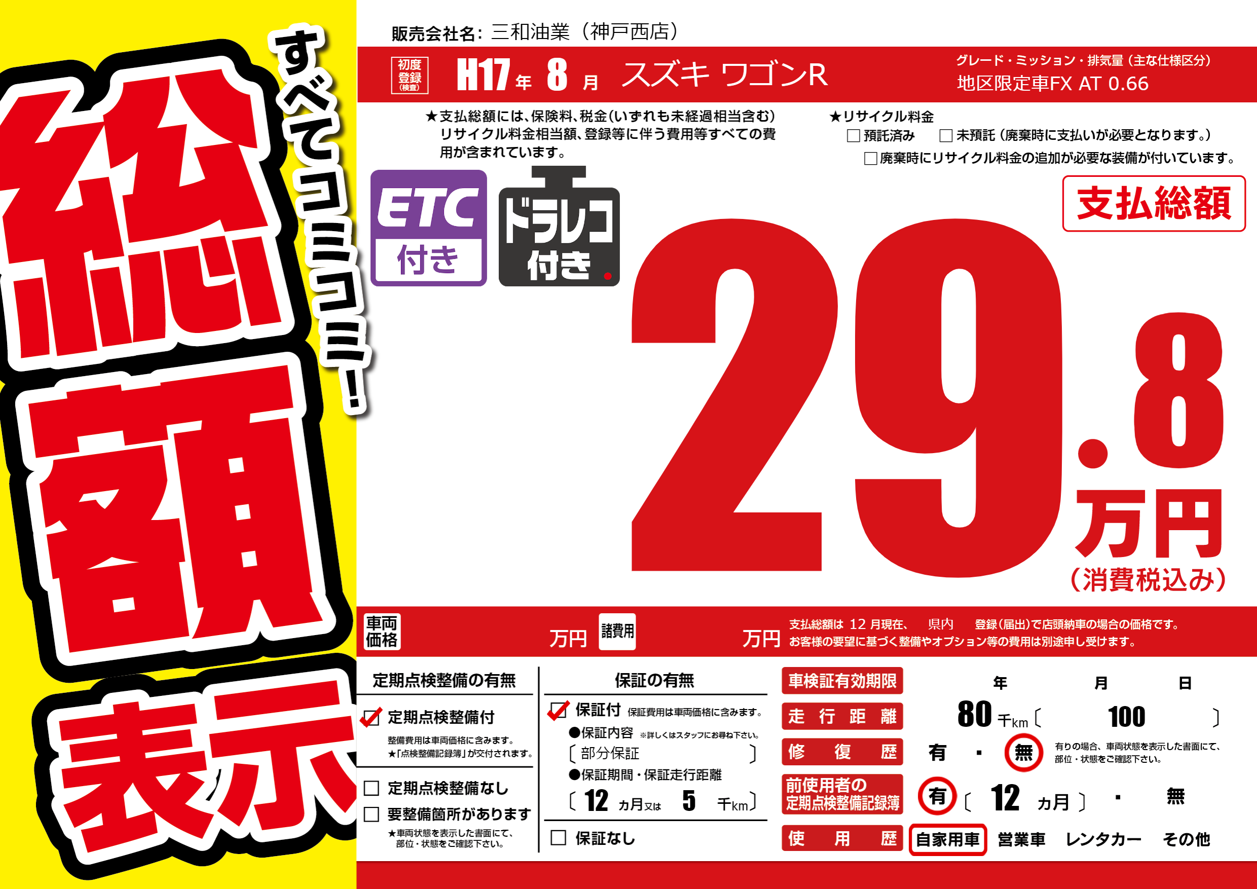 | 車名 | スズキ ワゴンR | グレード ミッション 排気量 |