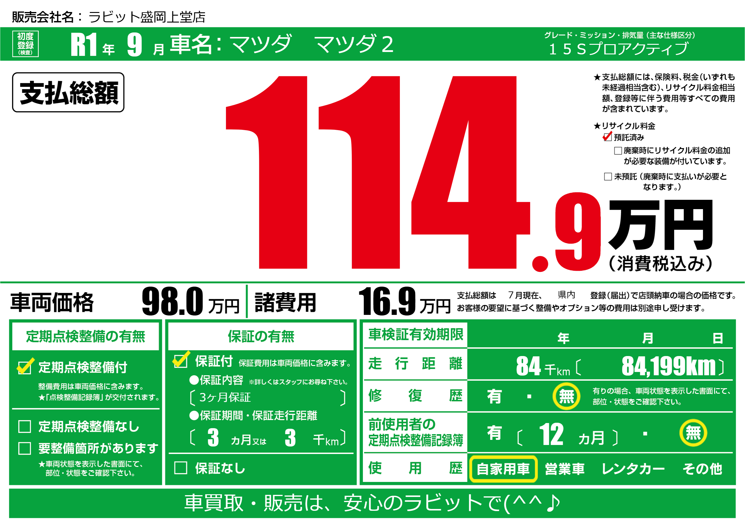 | 定期点検整備 | 定期点検整備あり | ||