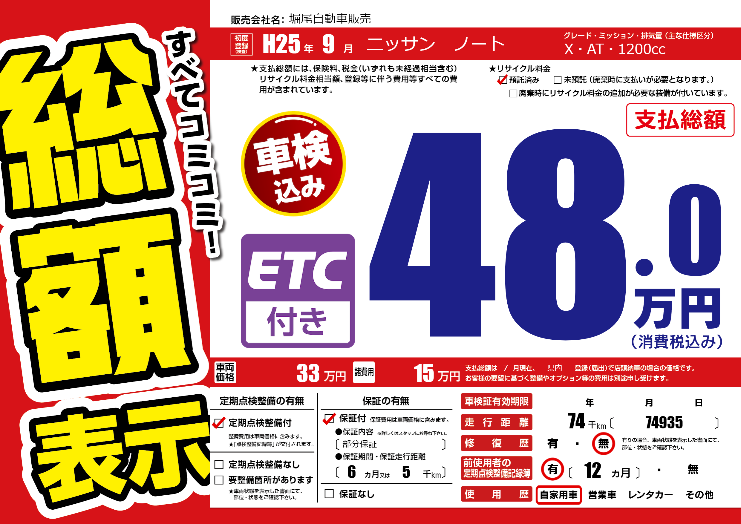 | 走行キロ | 7.4万km | 初年度登録 | H25年9月 |