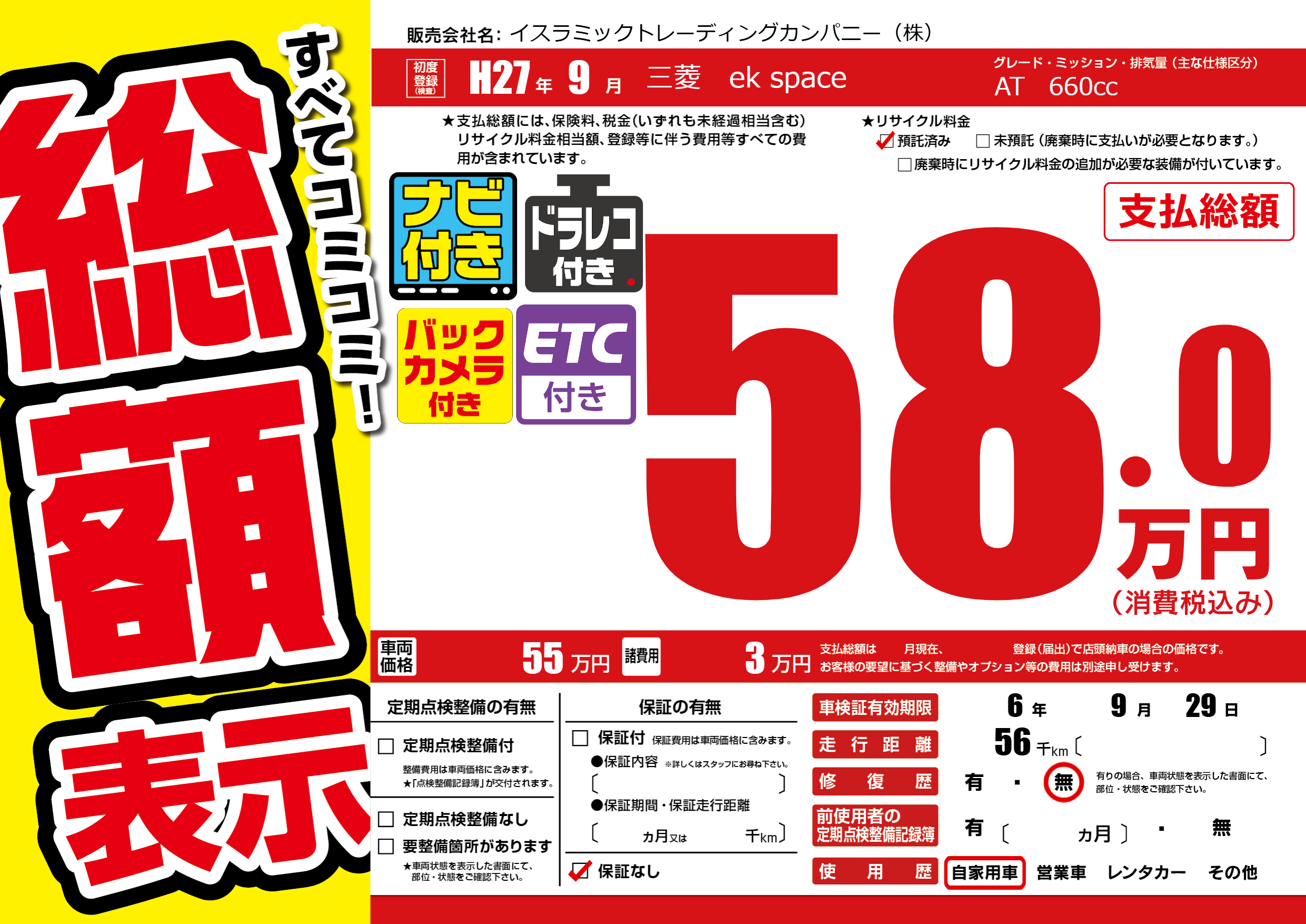 なし | 車検制限 | 6年9月29月 |