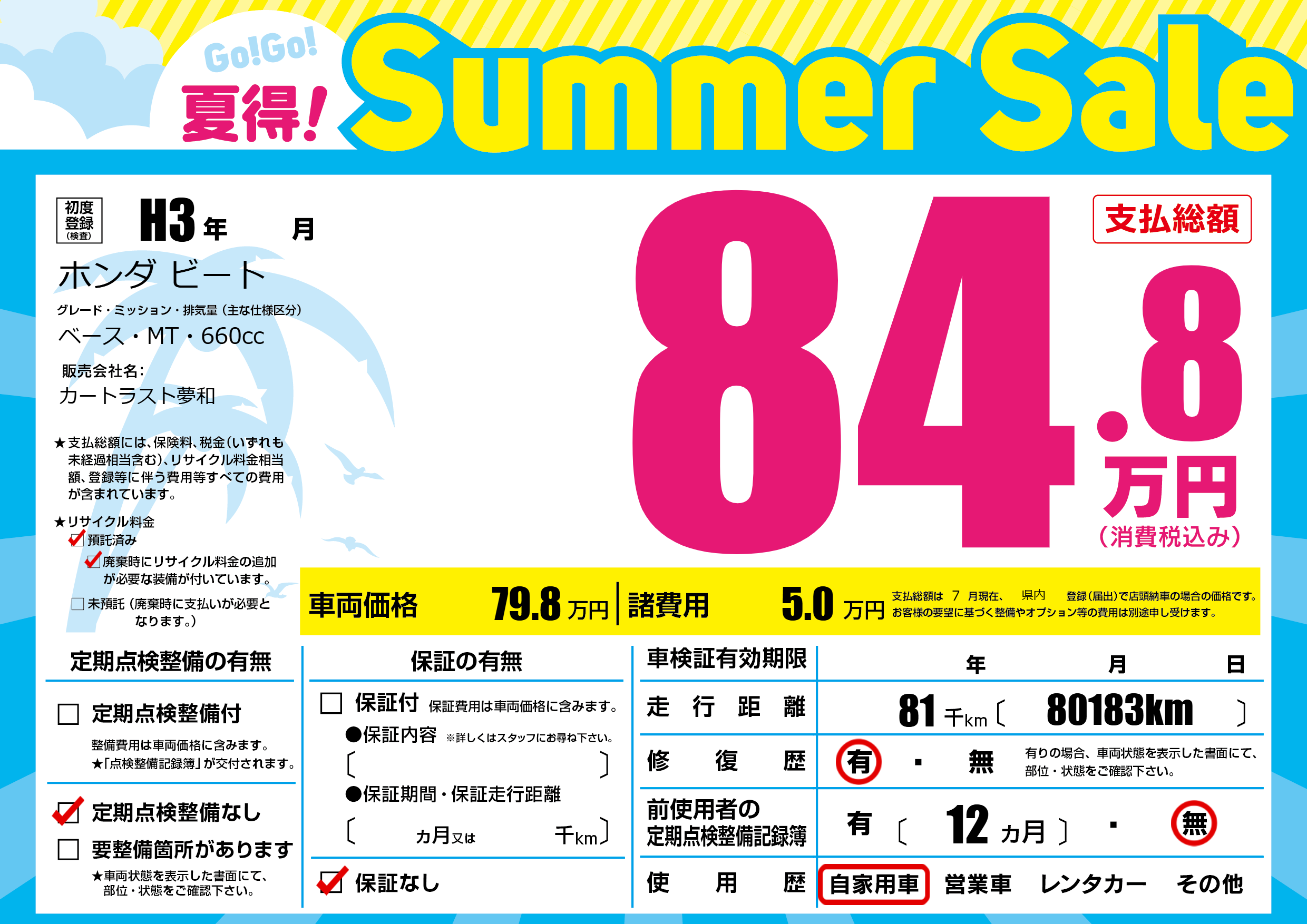 | 車名 | ホンダ ビート | グレード ミッション 排気量 |