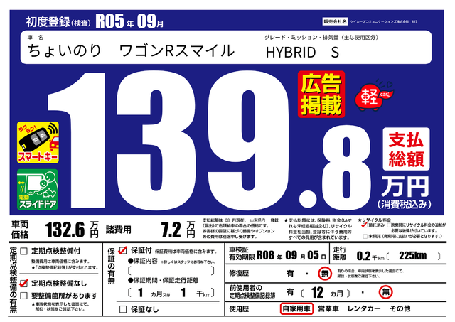 あり | リサイクル預託金相当額 | ( 0円)が別途必要 |