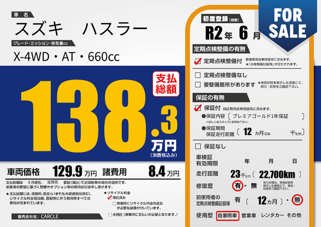 保証なし 保証内容(部分保証) 1ヶ月または(1)千kmまで |