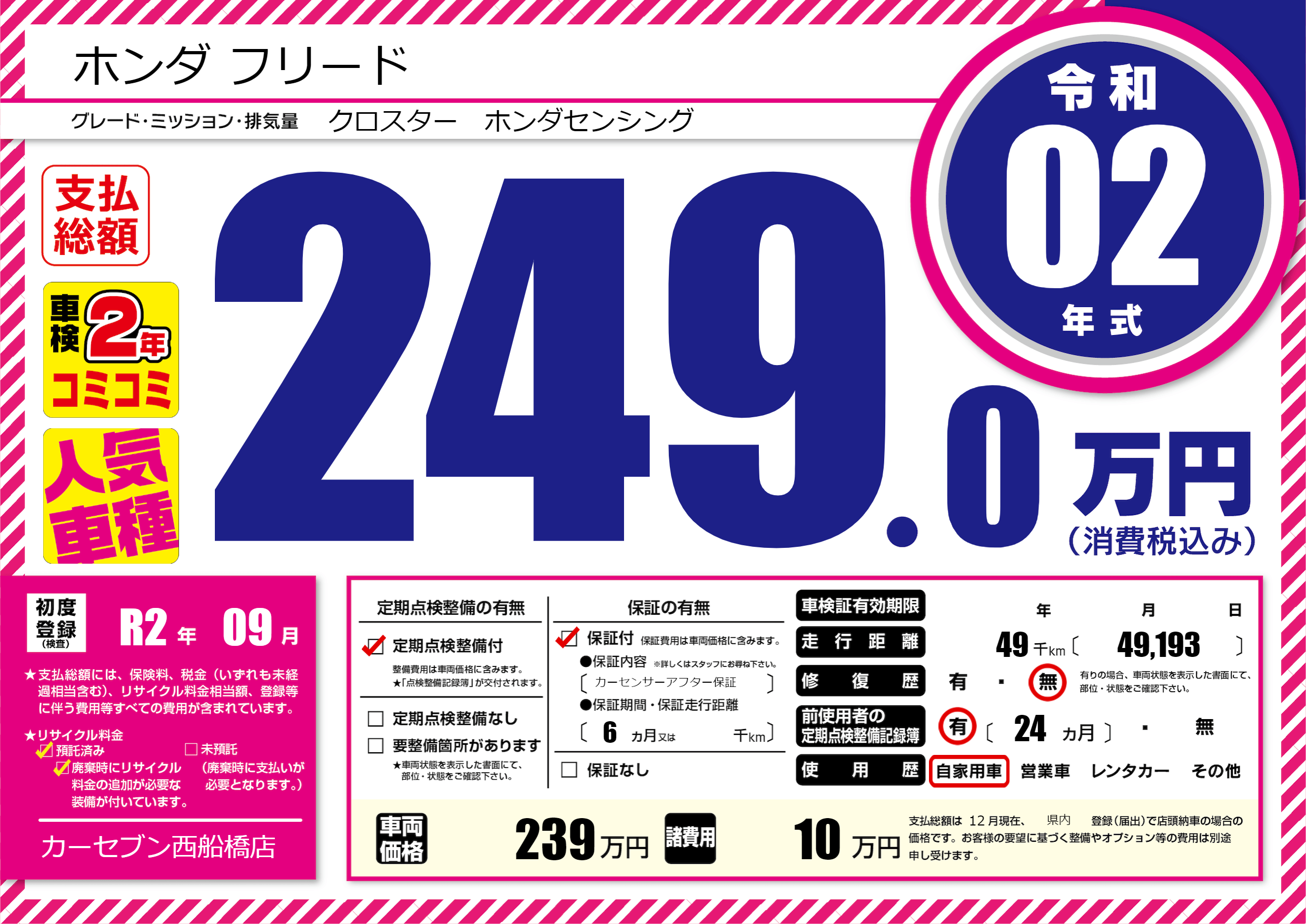 | 走行キロ | 4.9万km | 初年度登録 | R2年09月 |