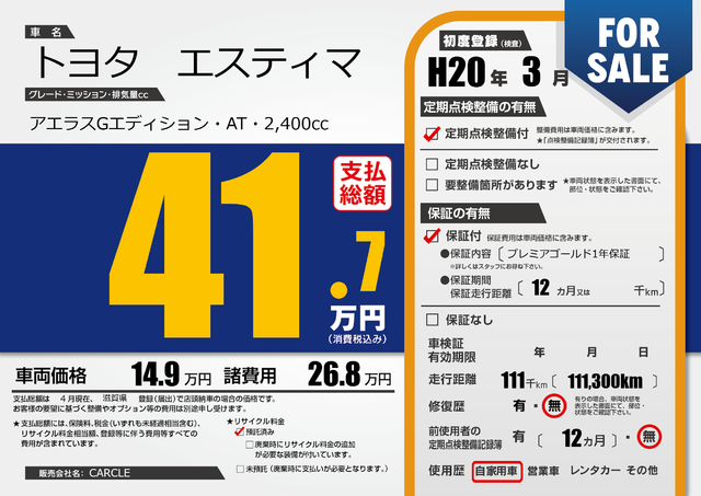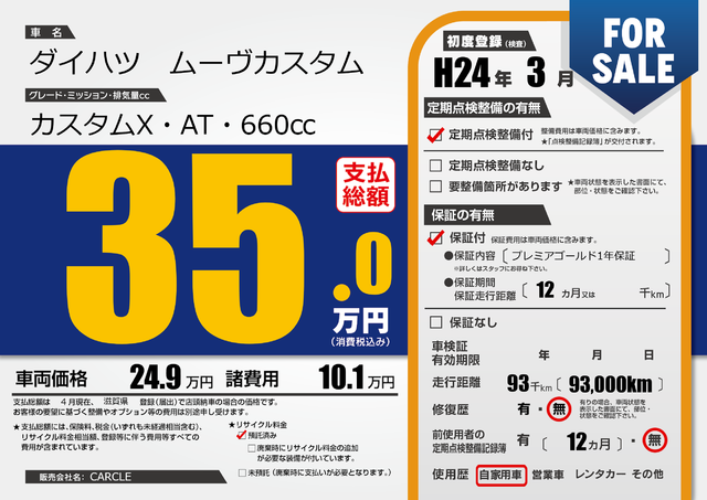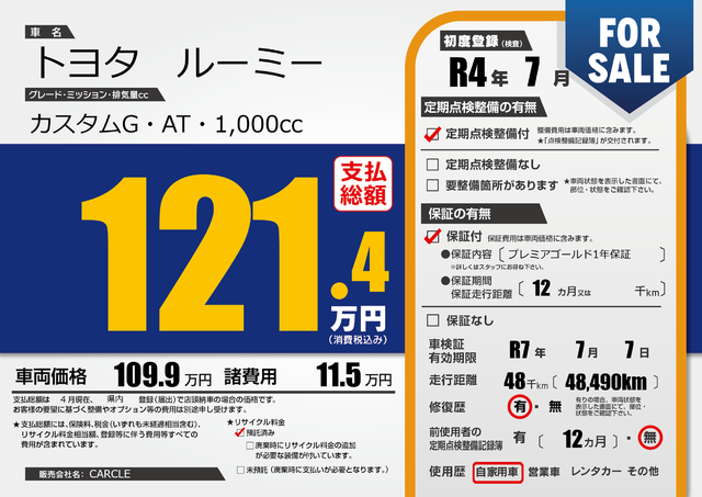 | 車検制限 | R7年 7月 - 日 | ||