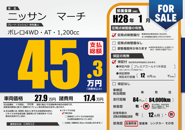 | 納車時の 整備費用 |