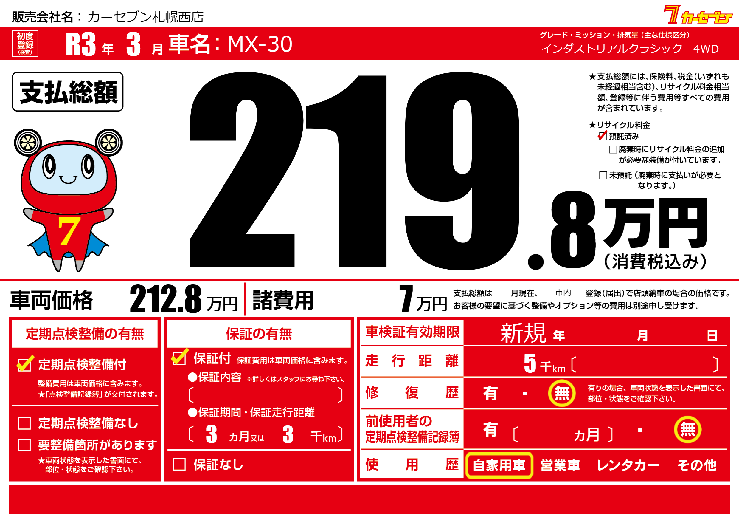| 車名 | MX-30 | グレード ミッション 排気量 |