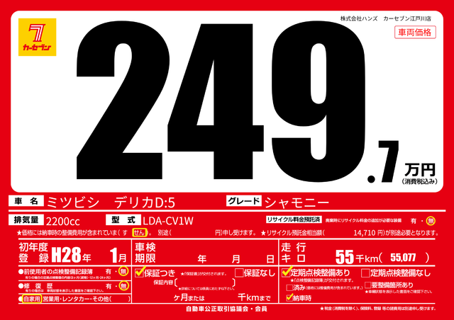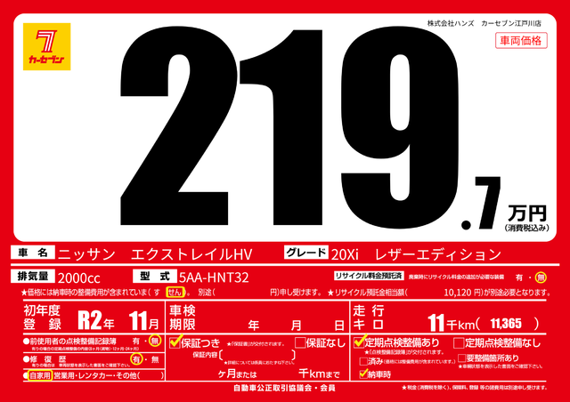 | 定期点検整備 | 定期点検整備あり 納車時あり | ||