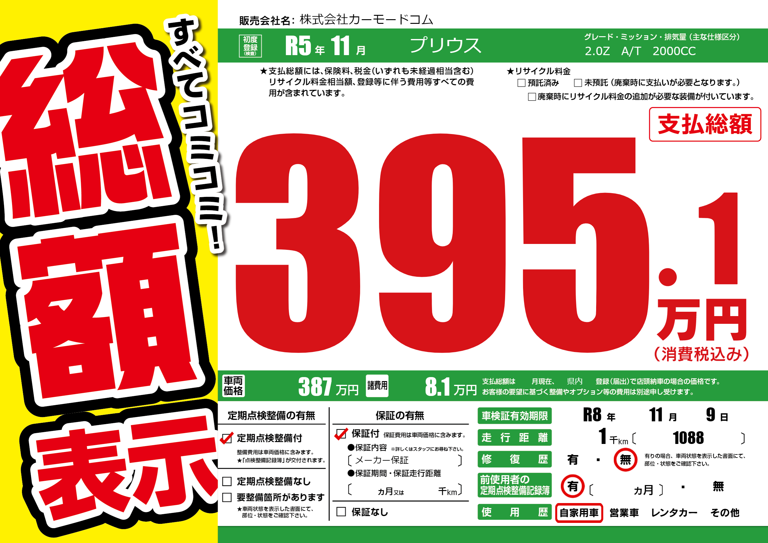 | 車名 | プリウス | グレード ミッション 排気量 |