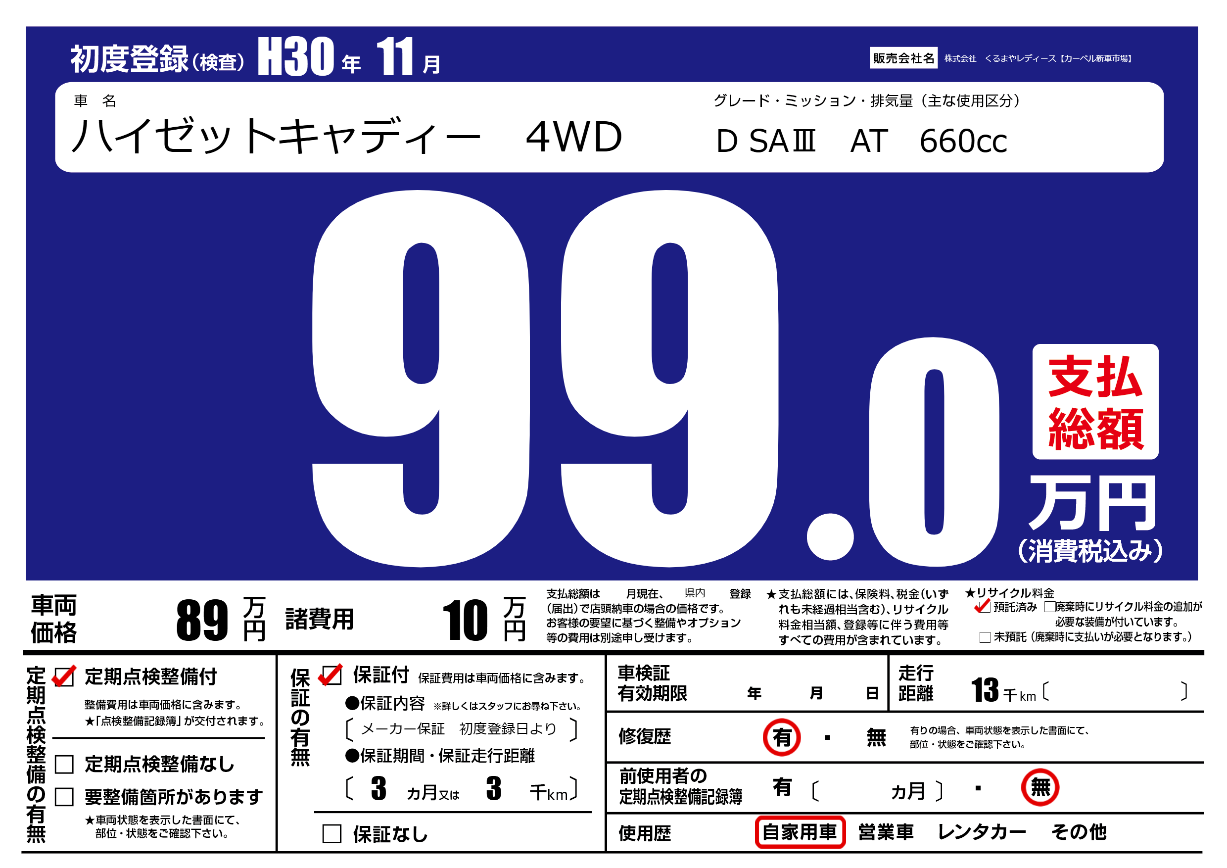 | 定期点検整備 | 定期点検整備あり | ||
