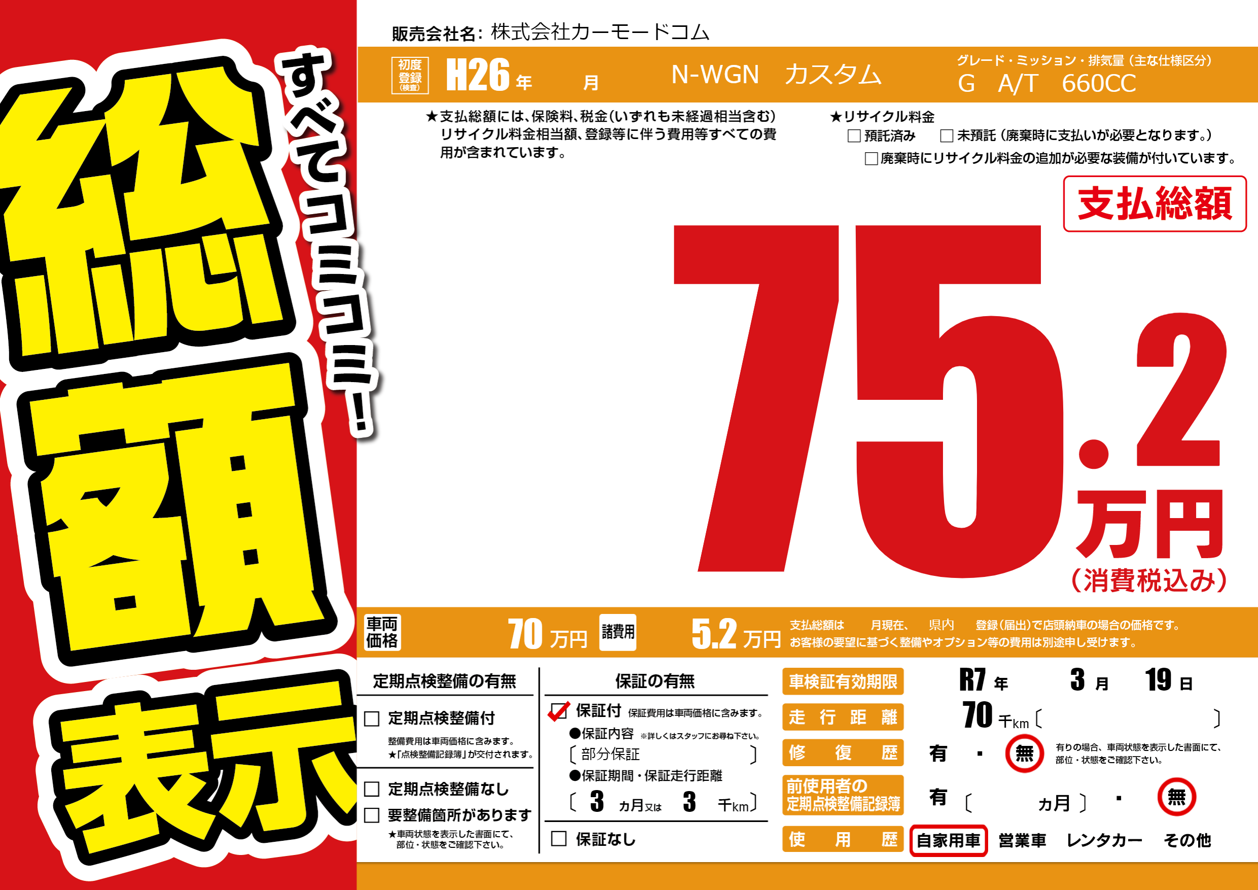 | 車検制限 | R7年 3月 19日 | ||