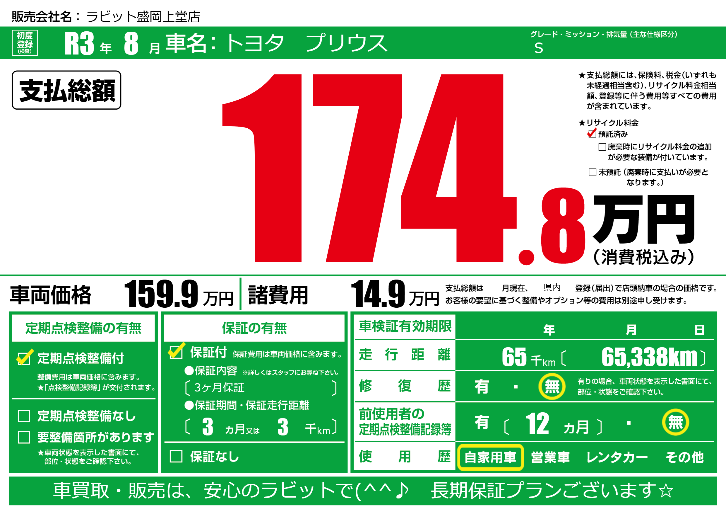 保証付き 保証内容(3ヶ月保証) 3ヶ月または(3)千kmまで |
