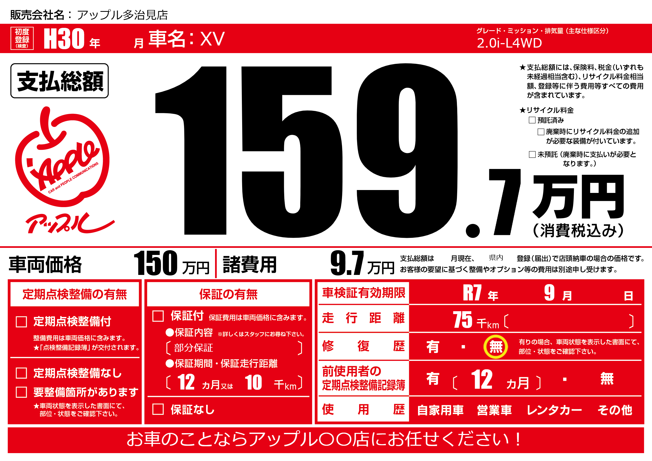 | 車検制限 | R7年 9月 - 日 | ||