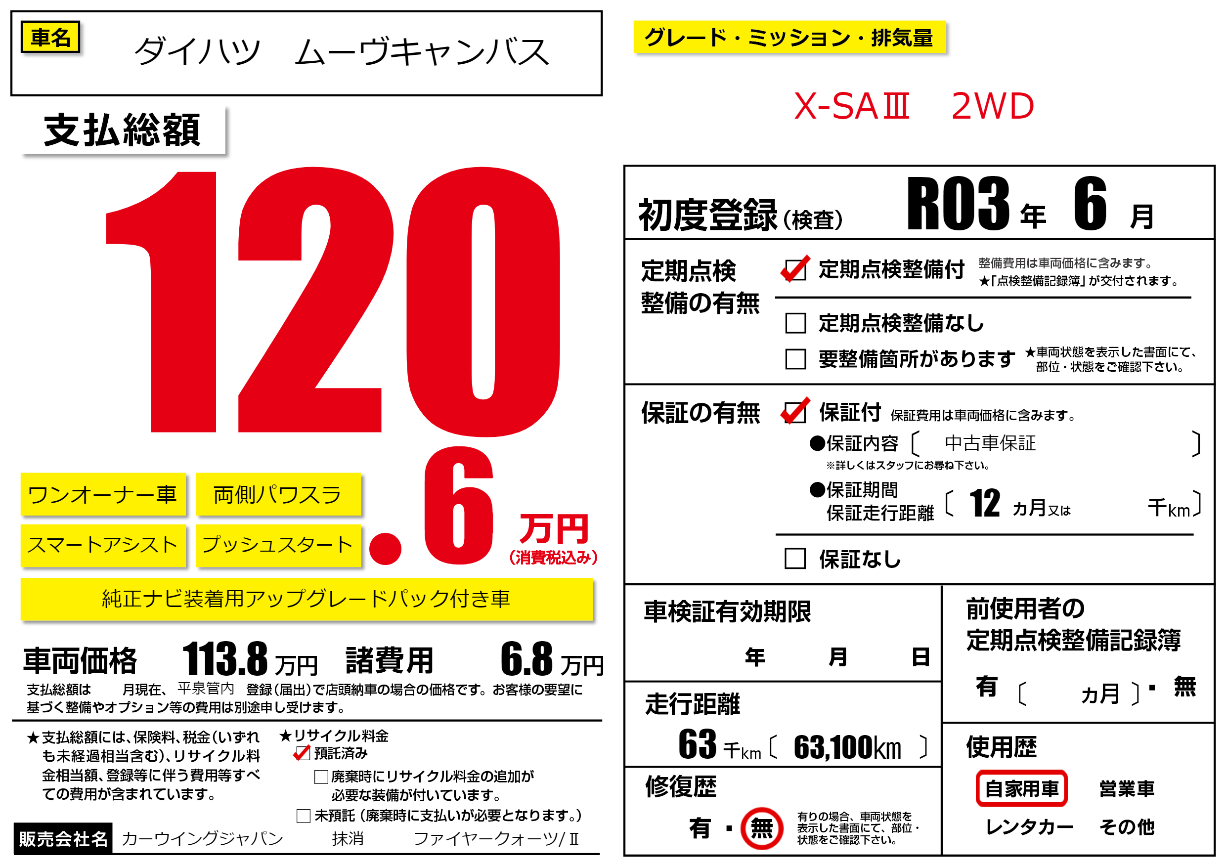 | 走行キロ | 6.3万km | 初年度登録 | R03年6月 |
