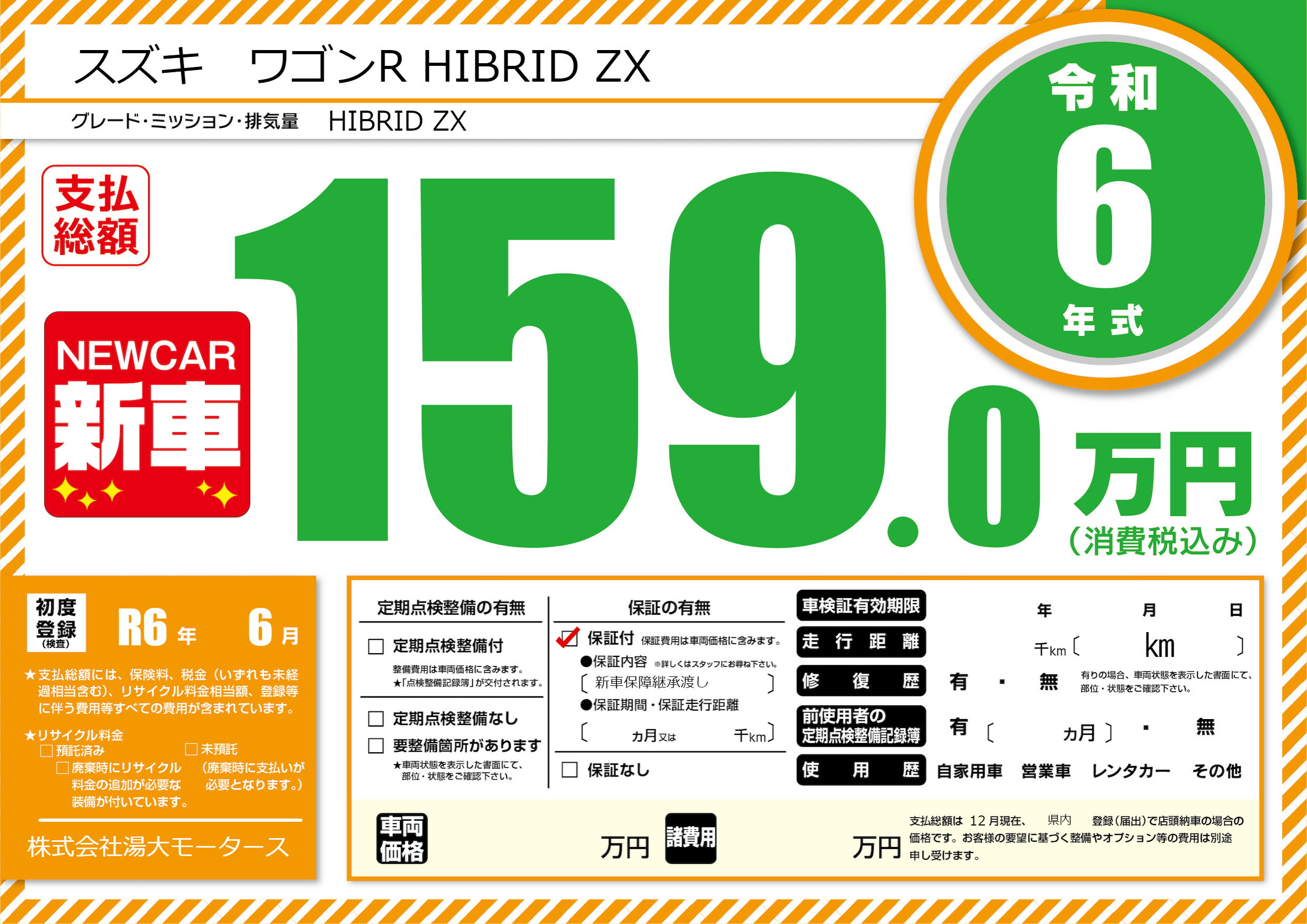 保証付き 保証内容(新車保障継承渡し) ---ヶ月または()千kmまで |