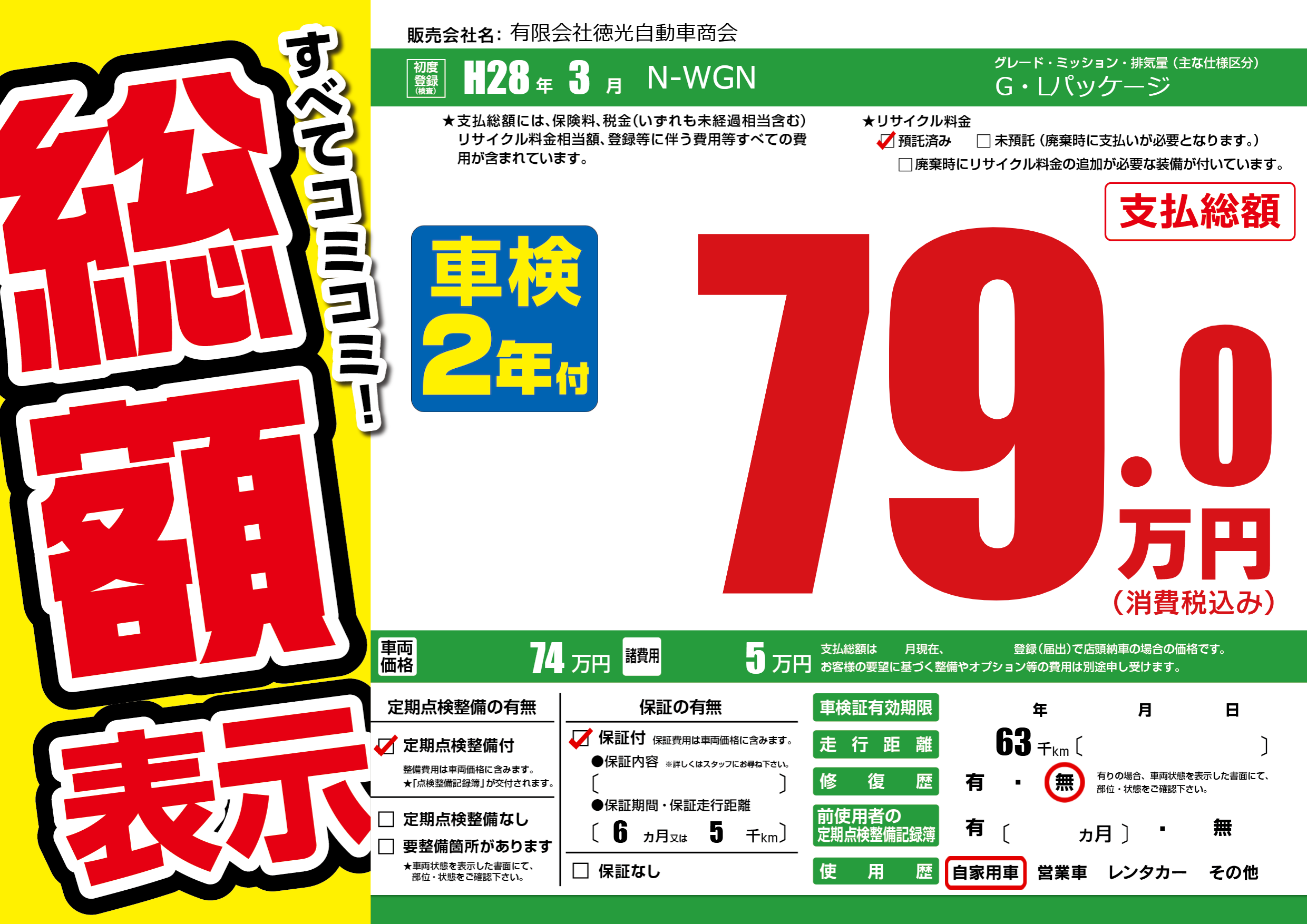 | 車名 | N-WGN | グレード ミッション 排気量 |