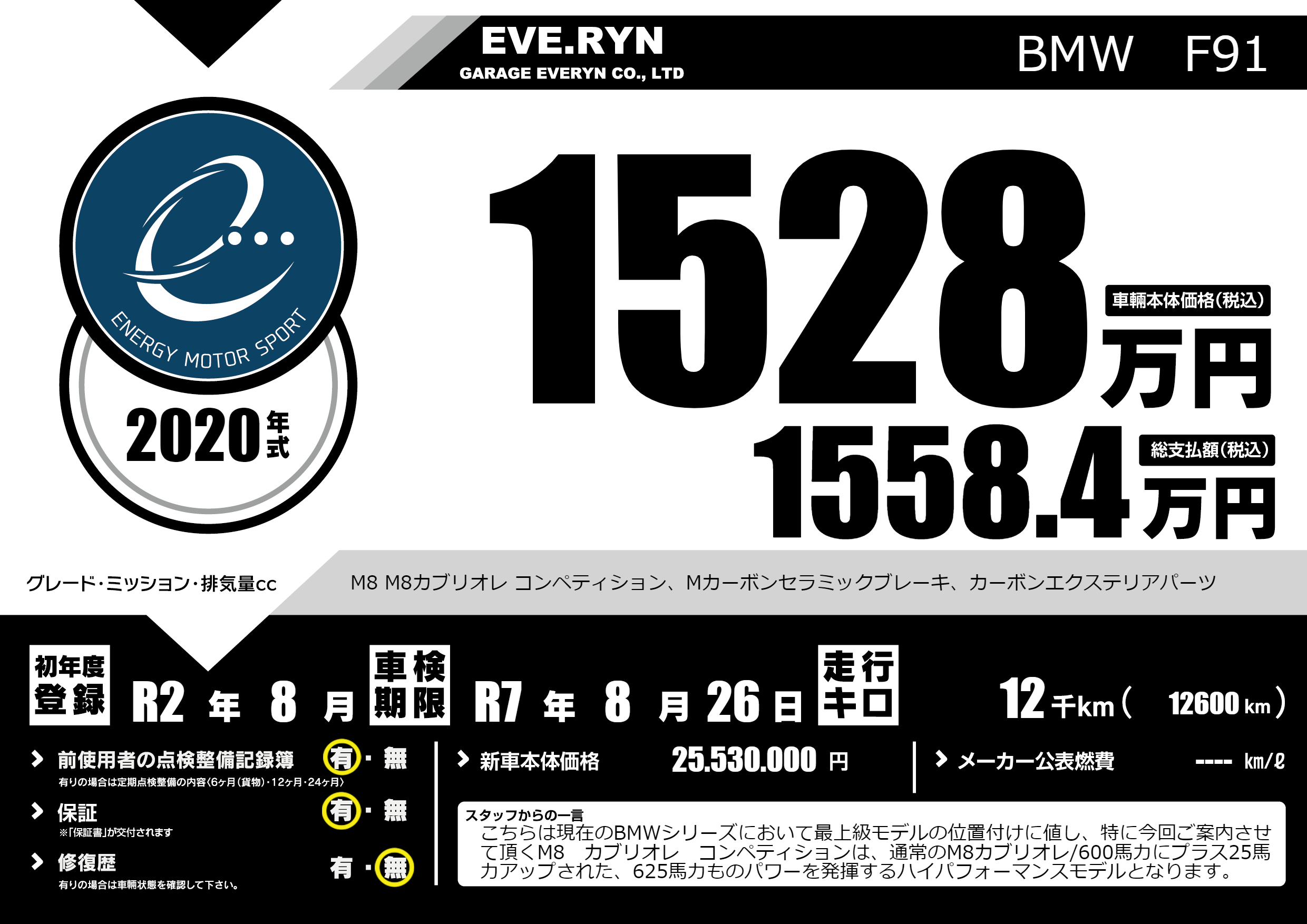 M8 M8カブリオレ コンペティション、Mカーボンセラミックブレーキ、カーボンエクステリアパーツ |