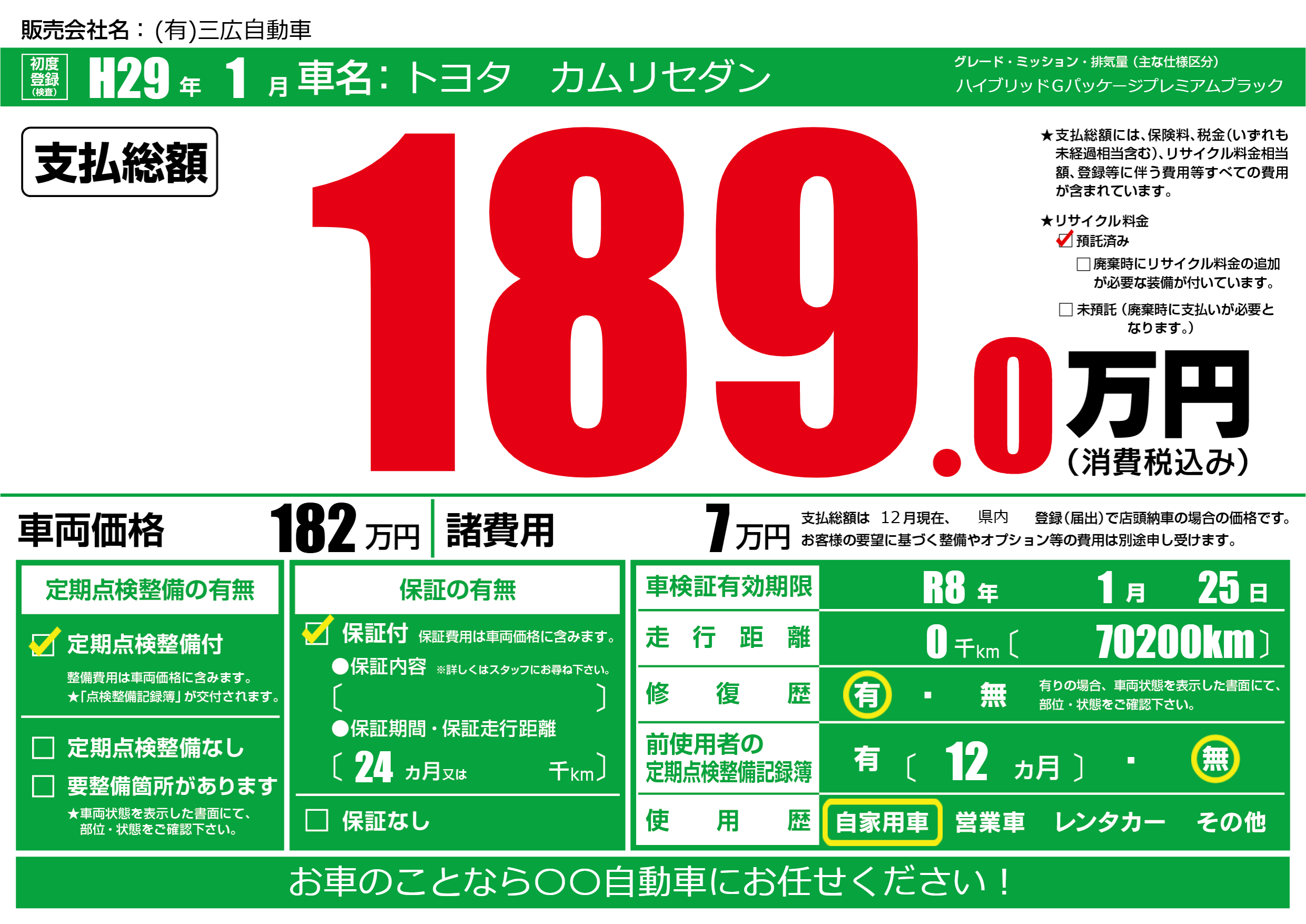 保証付き 保証内容(---) 24ヶ月または()千kmまで |