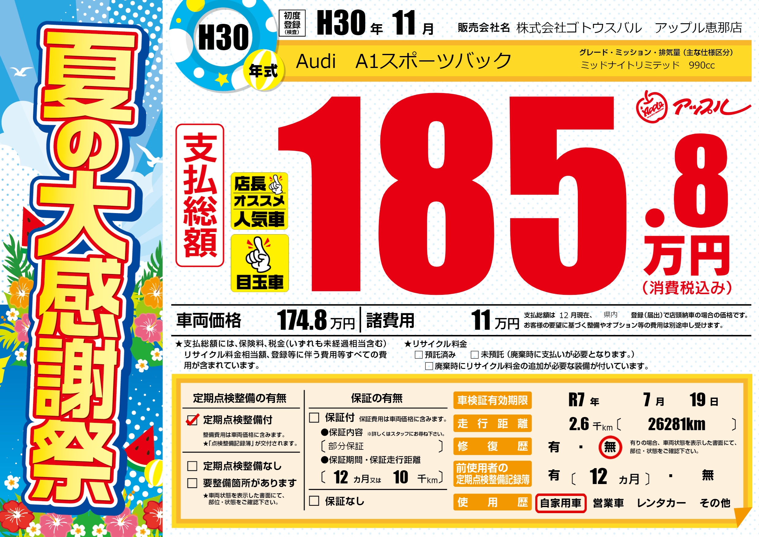 なし | 車検制限 | R7年7月19月 |