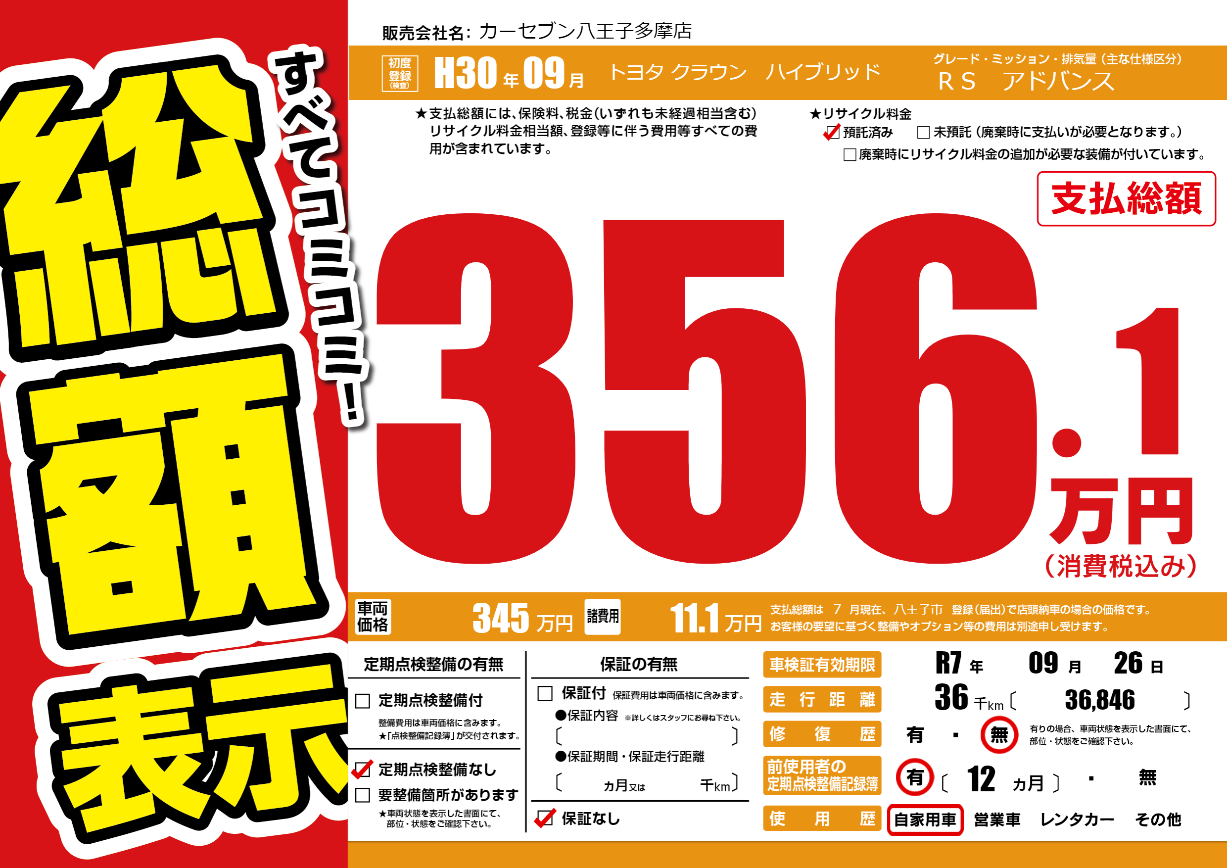 | 車検制限 | R7年 09月 26日 | ||