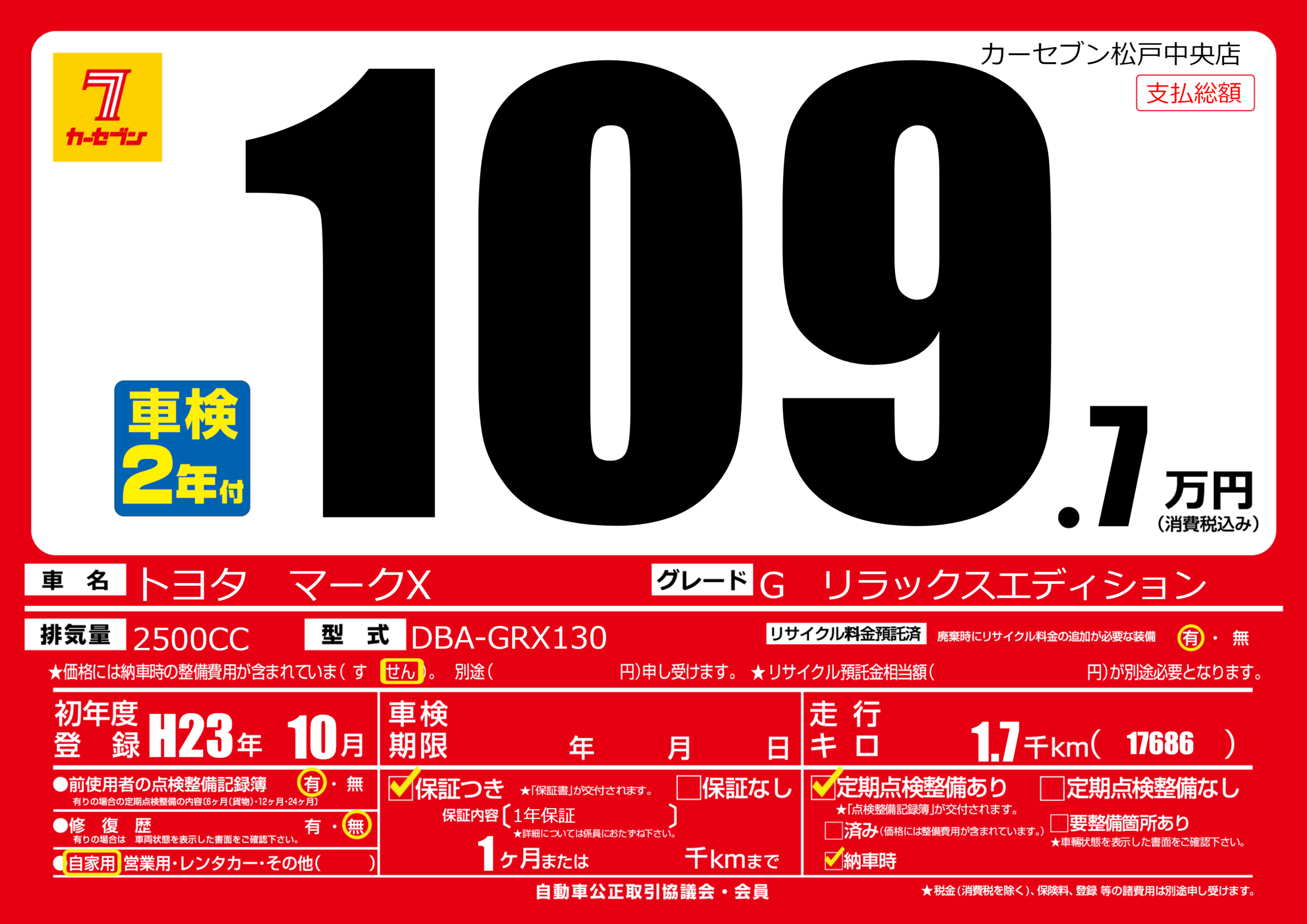 | 車検制限 | - 年 - 月 - 日 | ||