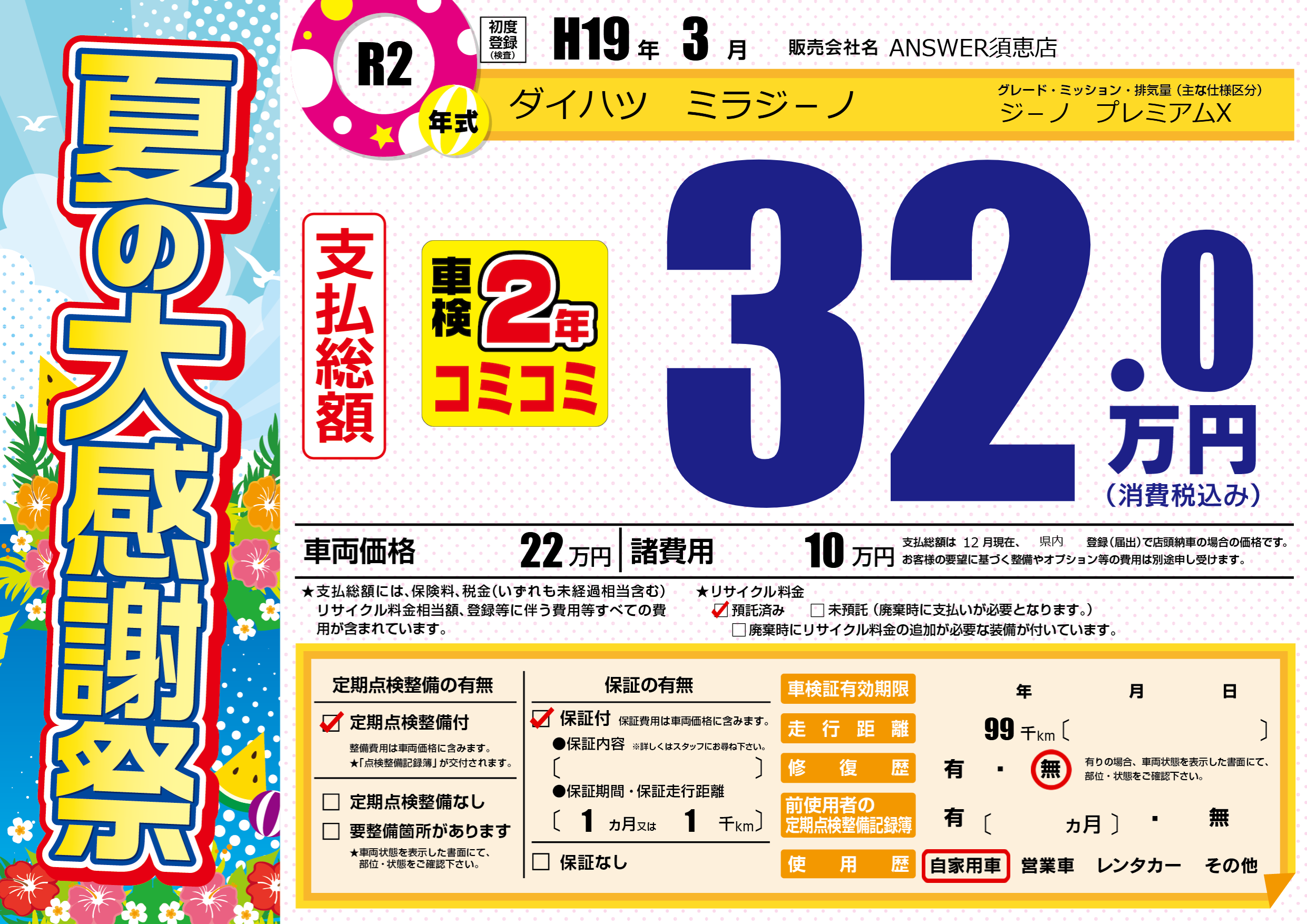 | 走行キロ | 9.9万km | 初年度登録 | H19年3月 |