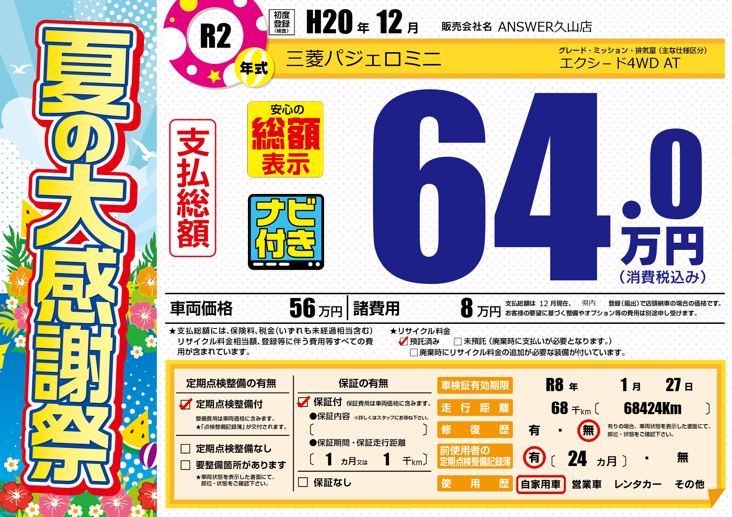 なし | 車検制限 | R8年1月27月 |