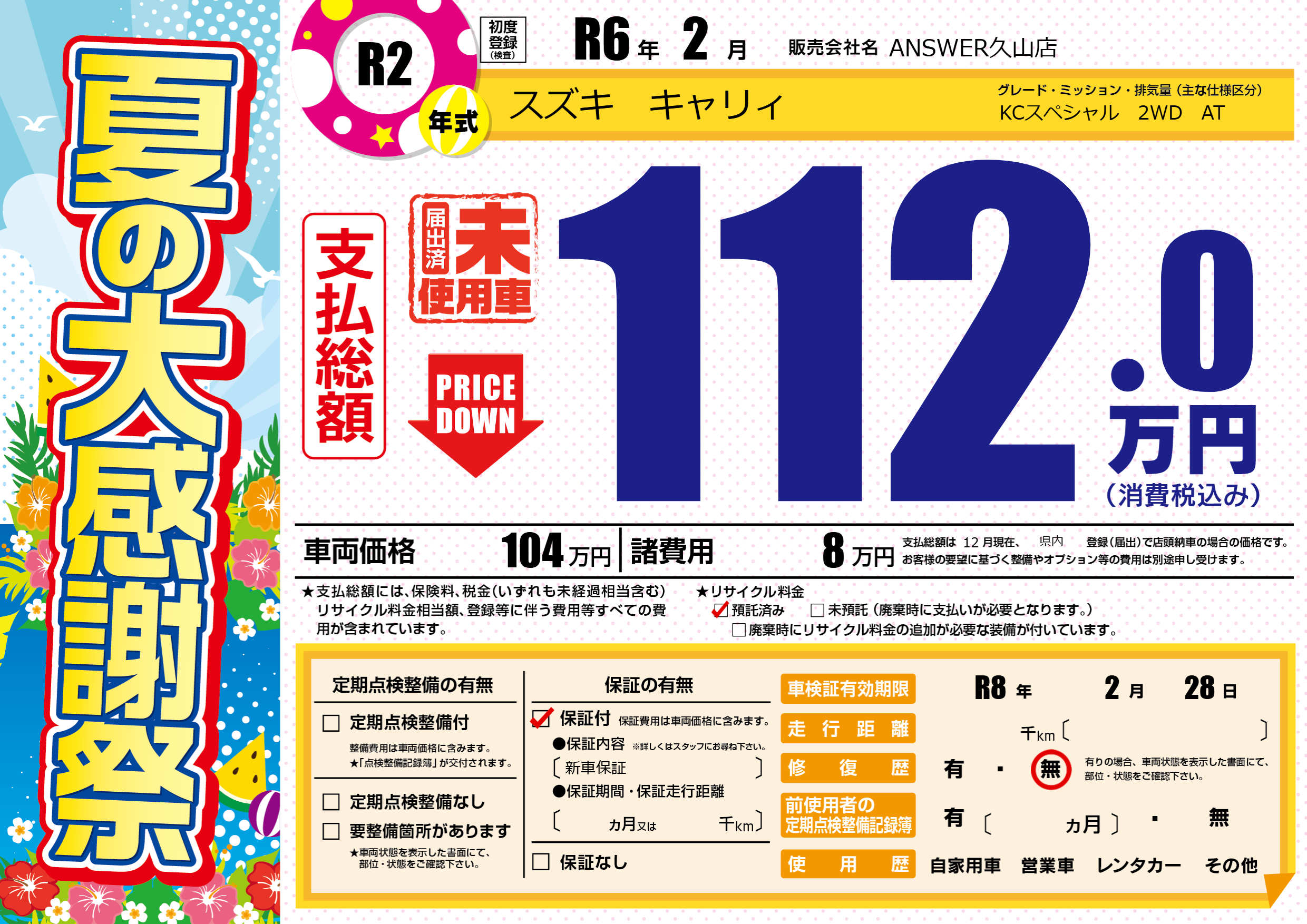 なし | 車検制限 | R8年2月28月 |