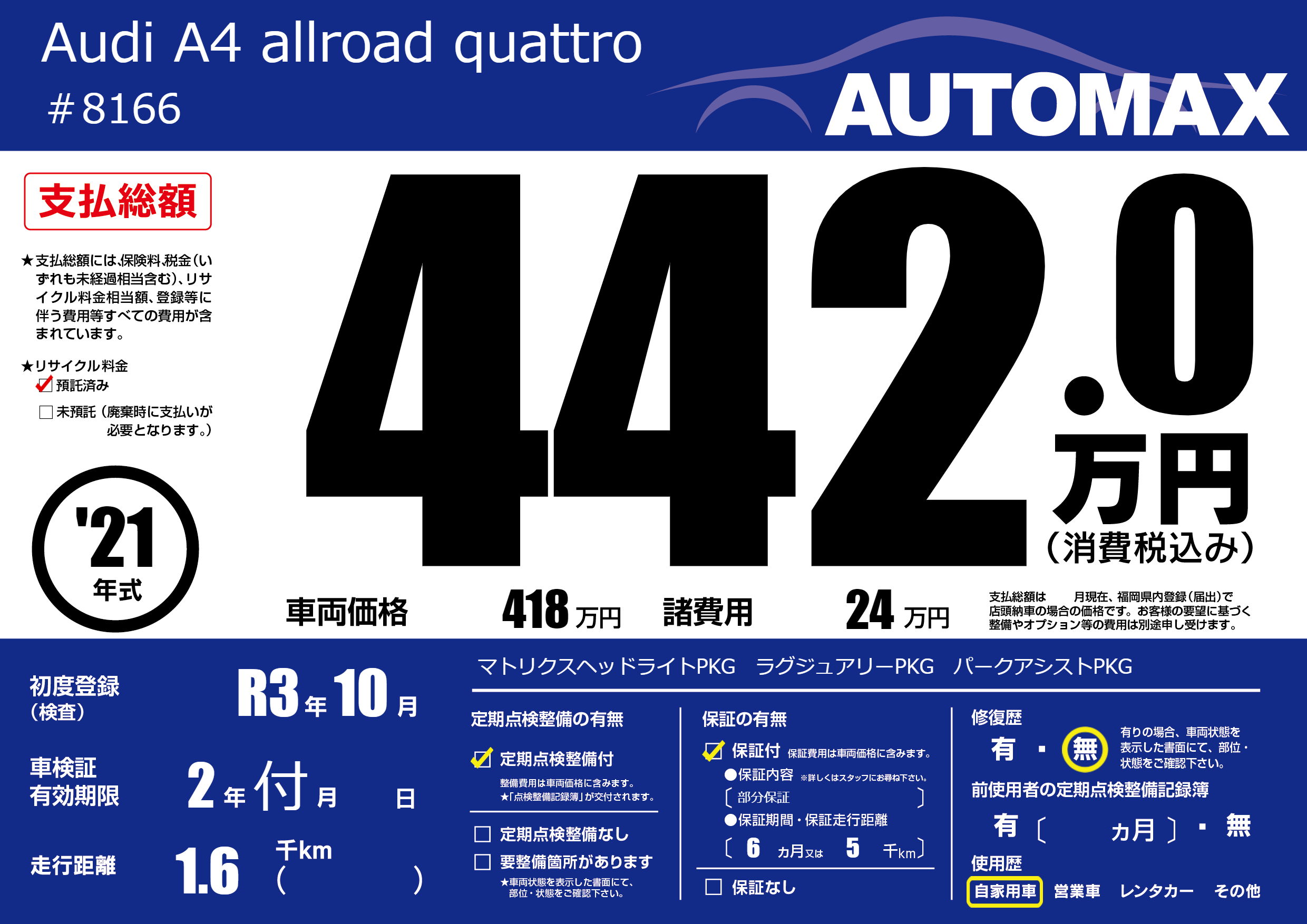 | 車名 | Audi A4 allroad quattro | グレード ミッション 排気量 |