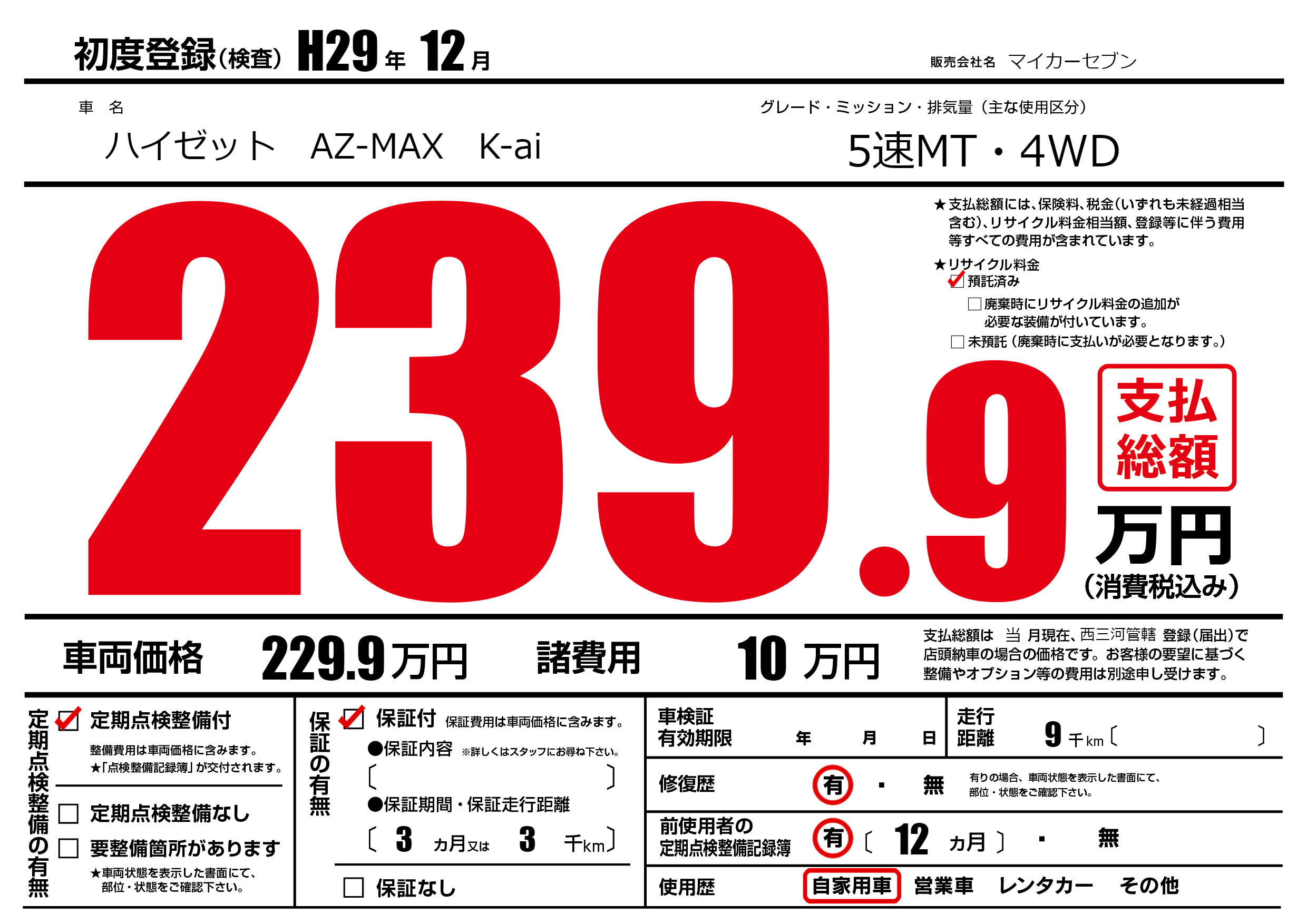 | 初年度登録 | H29年12月 | ||