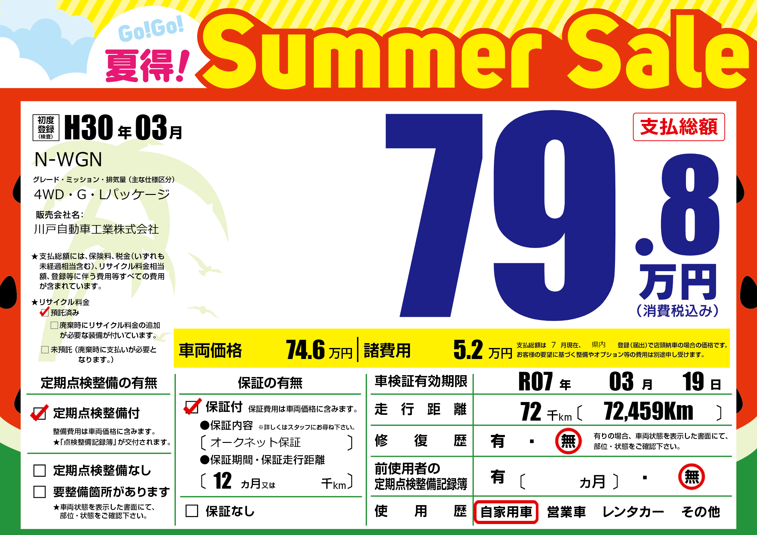 | 定期点検整備 | 定期点検整備あり | ||