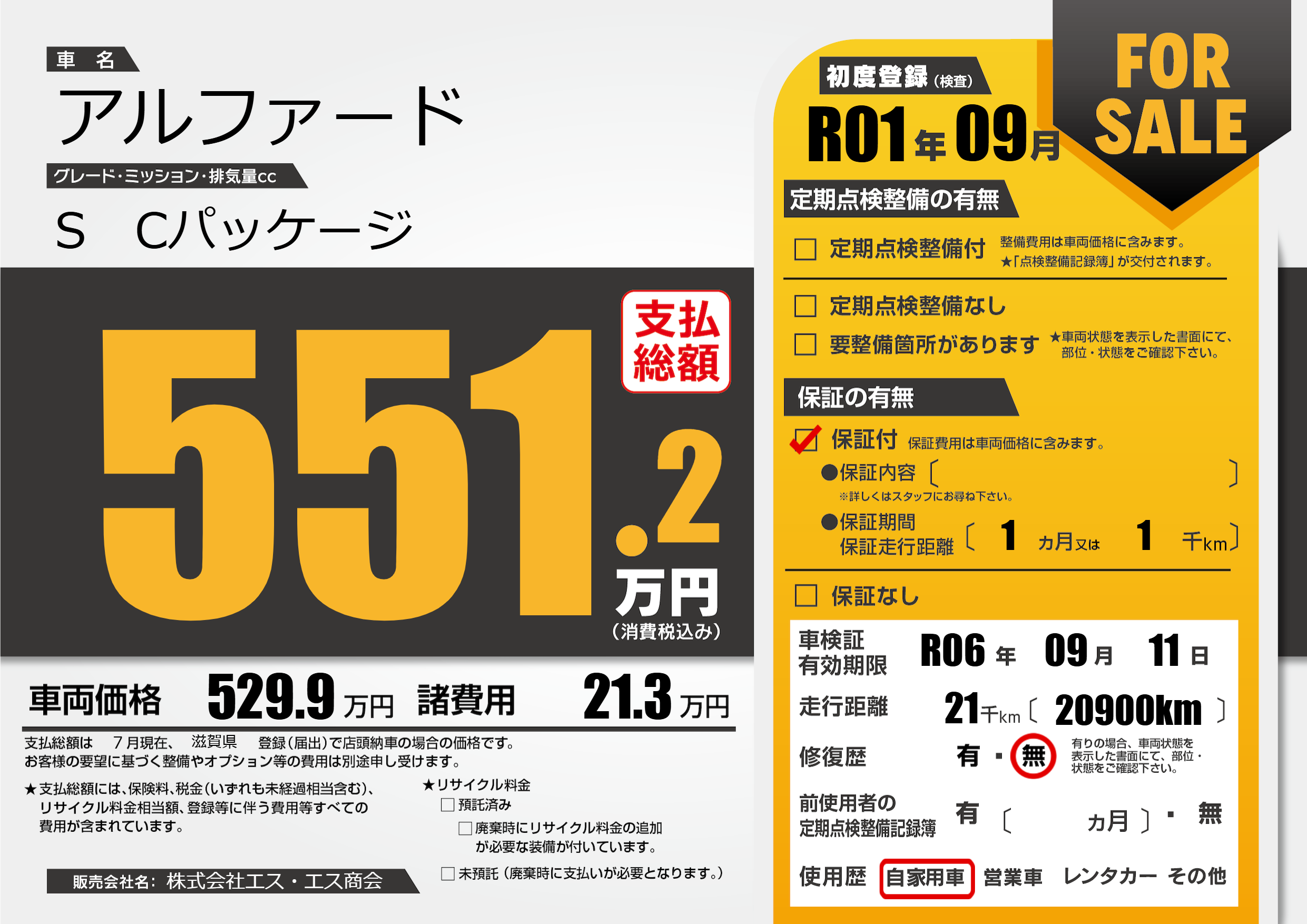 | 車名 | アルファード | グレード ミッション 排気量 |