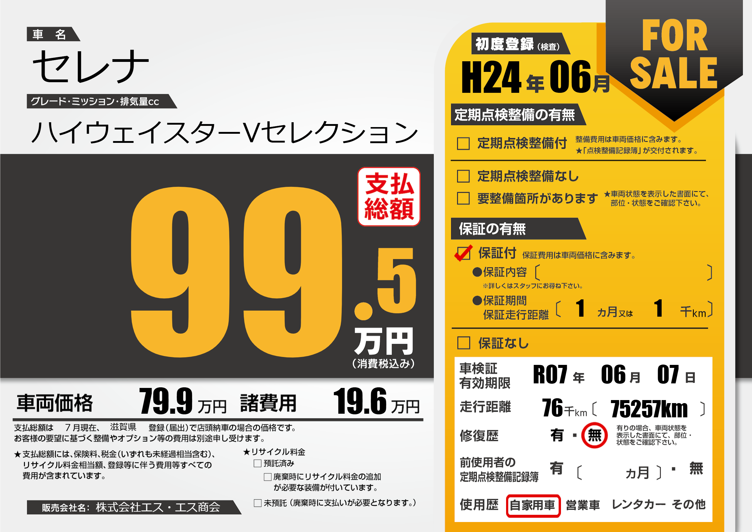 なし | 車検制限 | R07年06月07月 |
