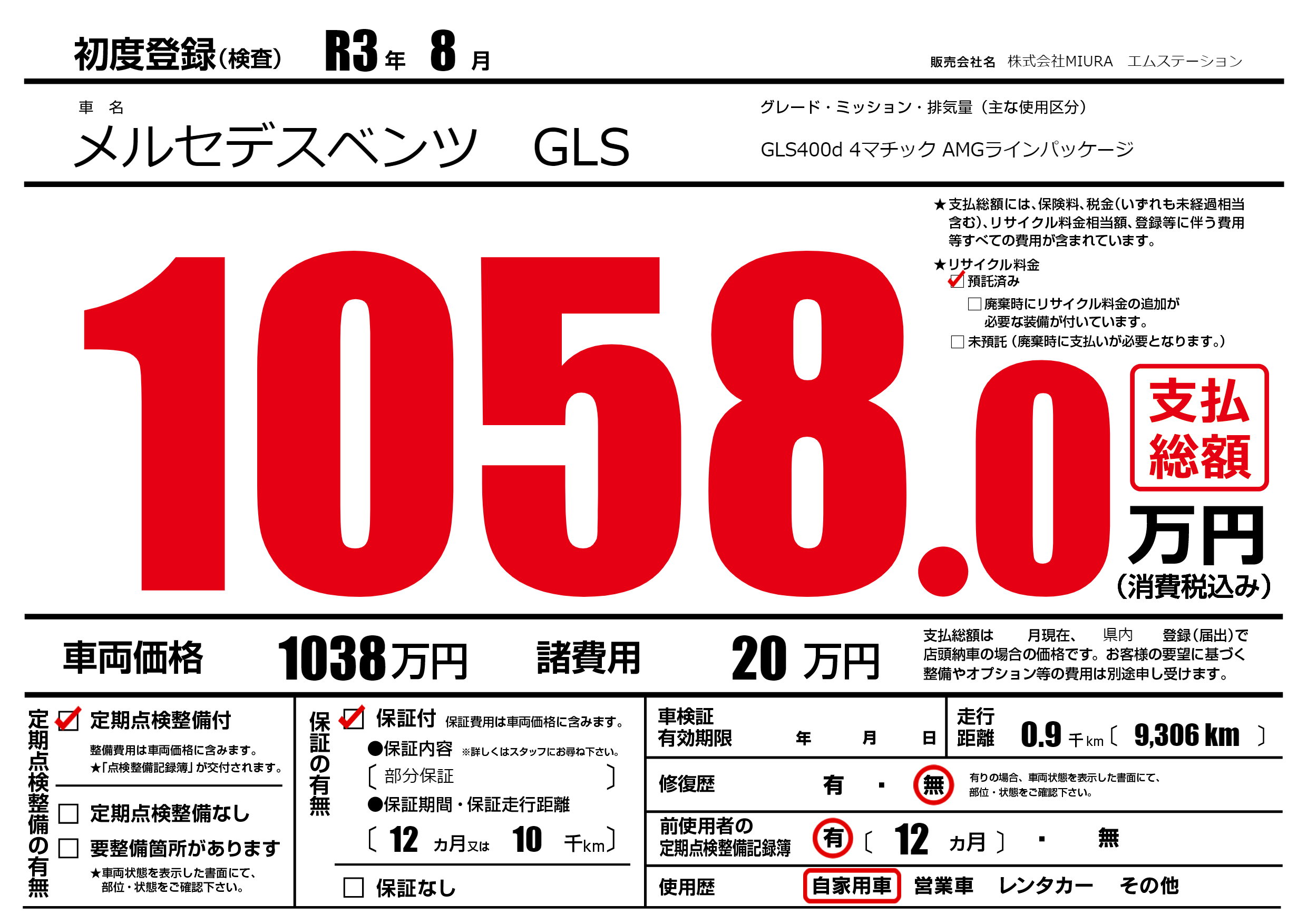 | 初年度登録 | R3年8月 | ||