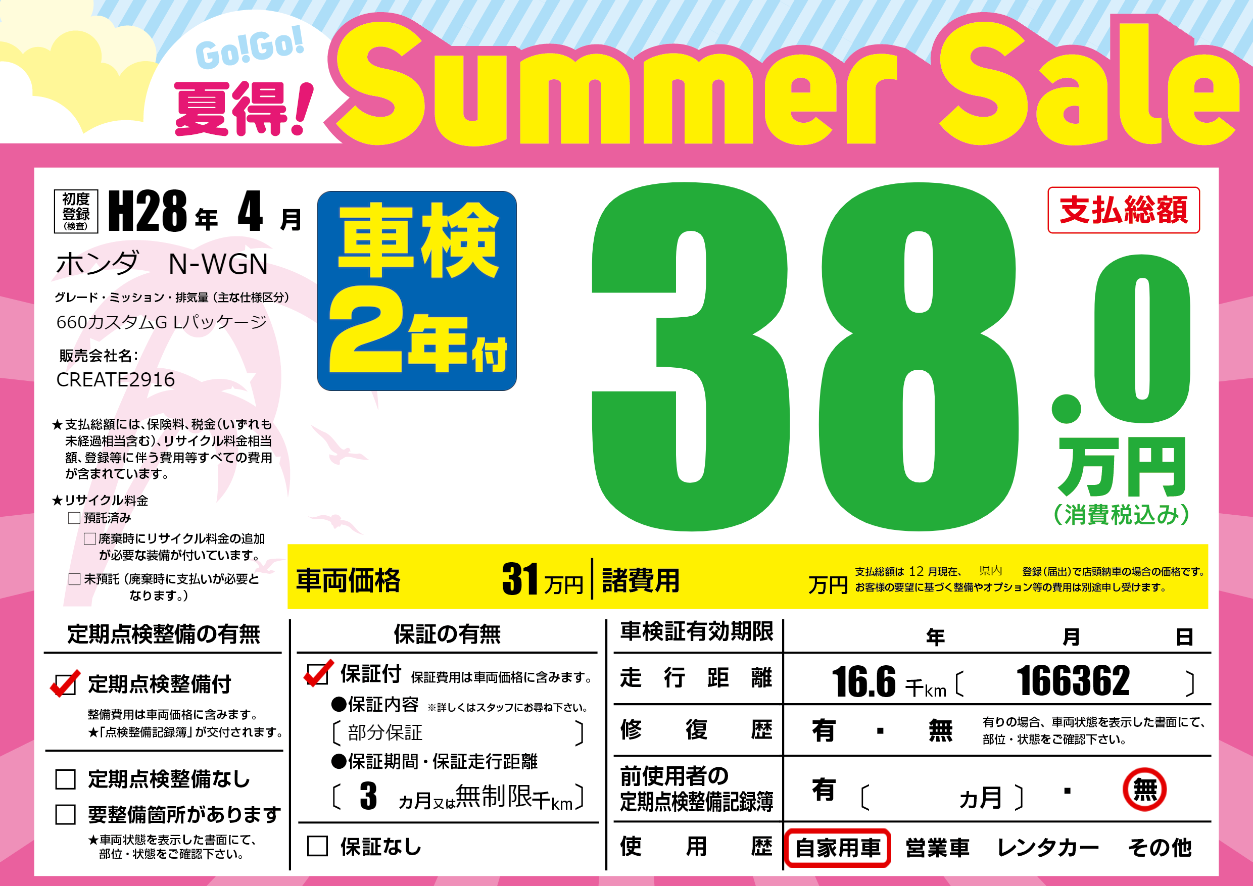 | 車名 | ホンダ N-WGN | グレード ミッション 排気量 |
