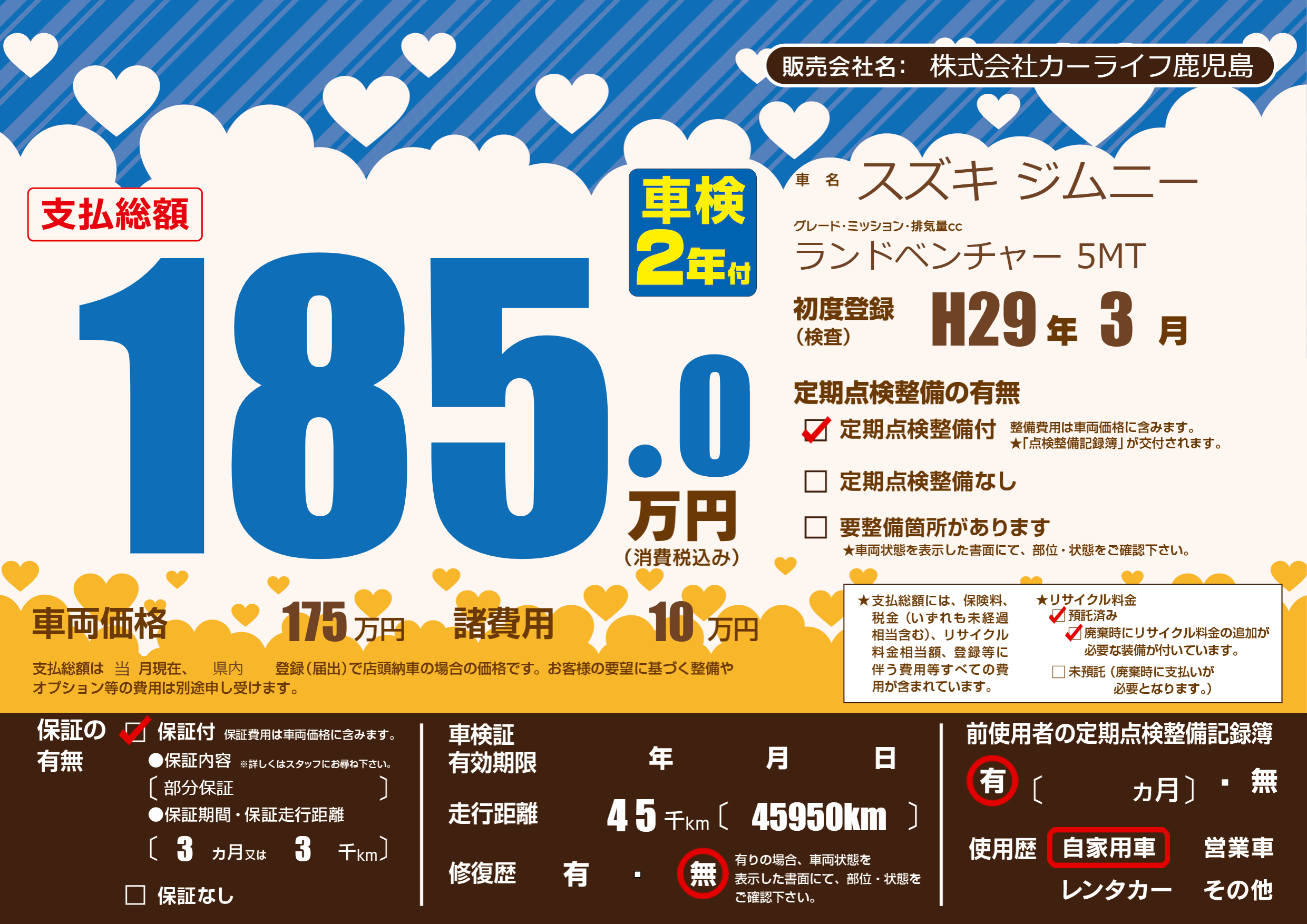 | 走行キロ | 0.4万km | 初年度登録 | H29年3月 |
