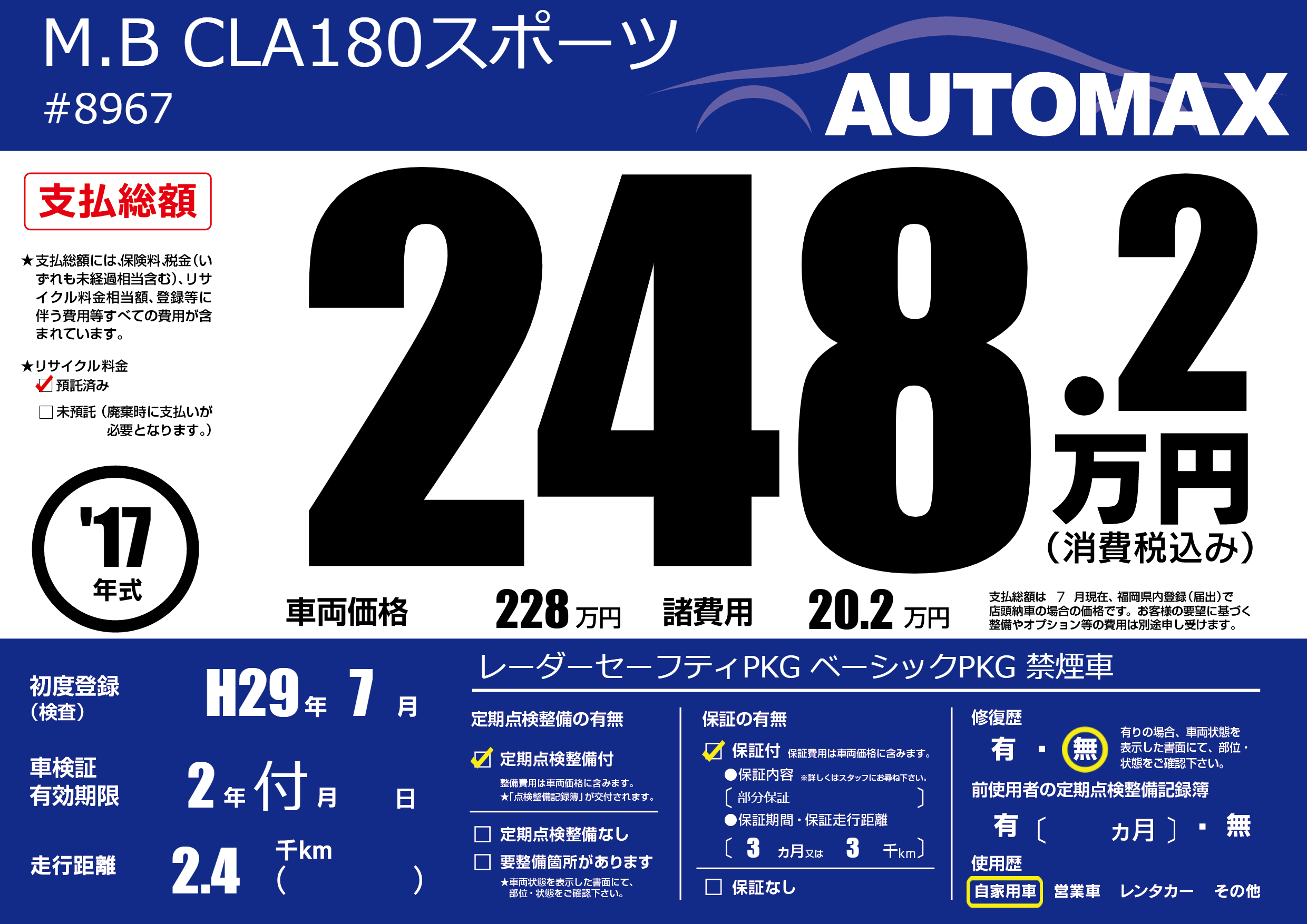 なし | 車検制限 | 2年付月---月 |