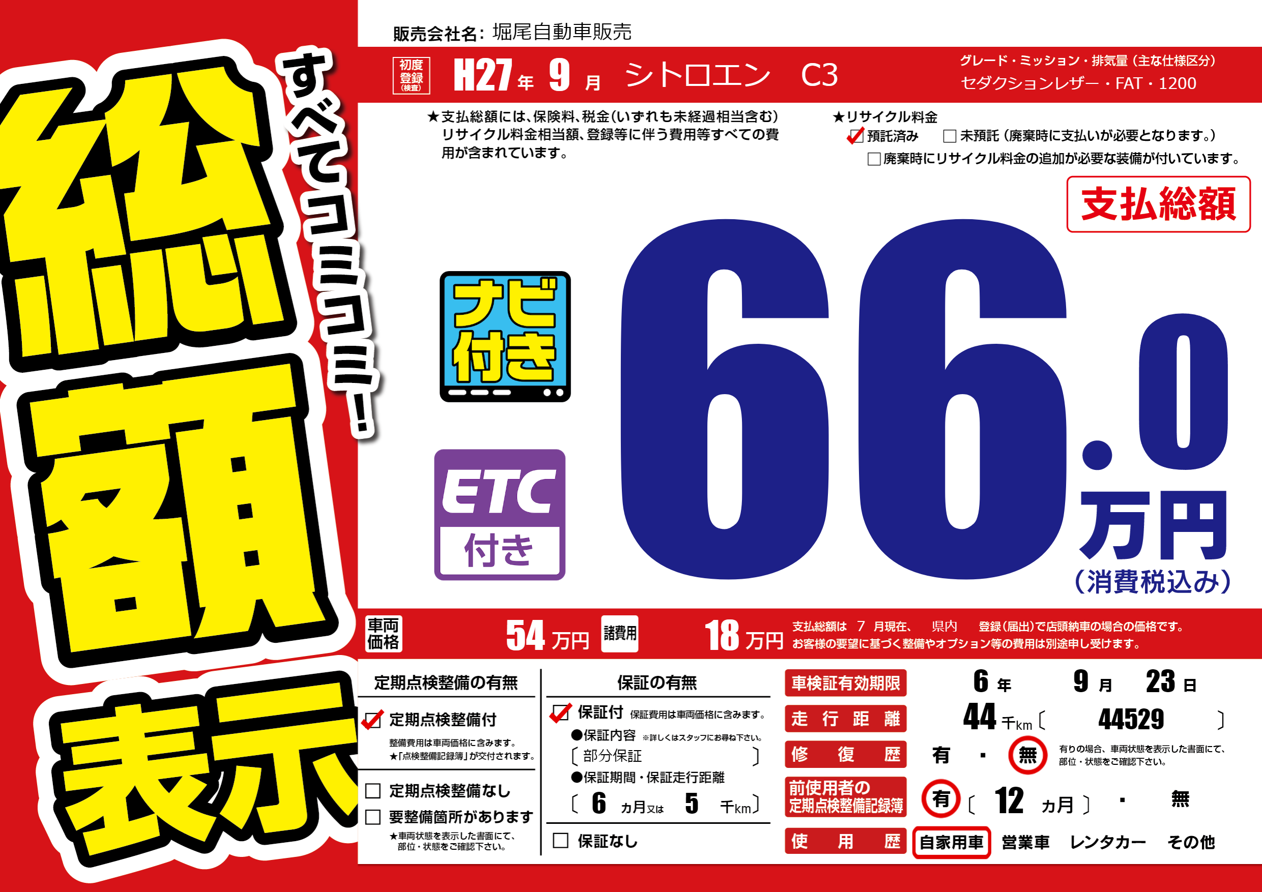 | 車検制限 | 6年 9月 23日 | ||