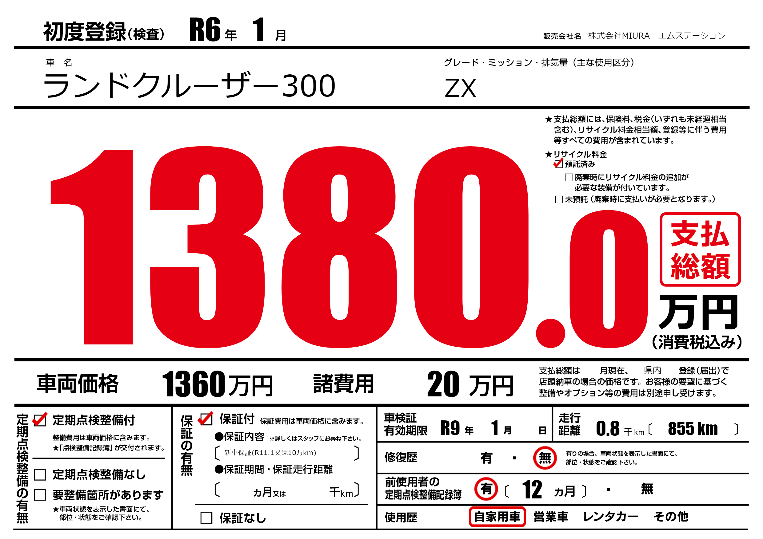 | 車検制限 | R9年 1月 - 日 | ||