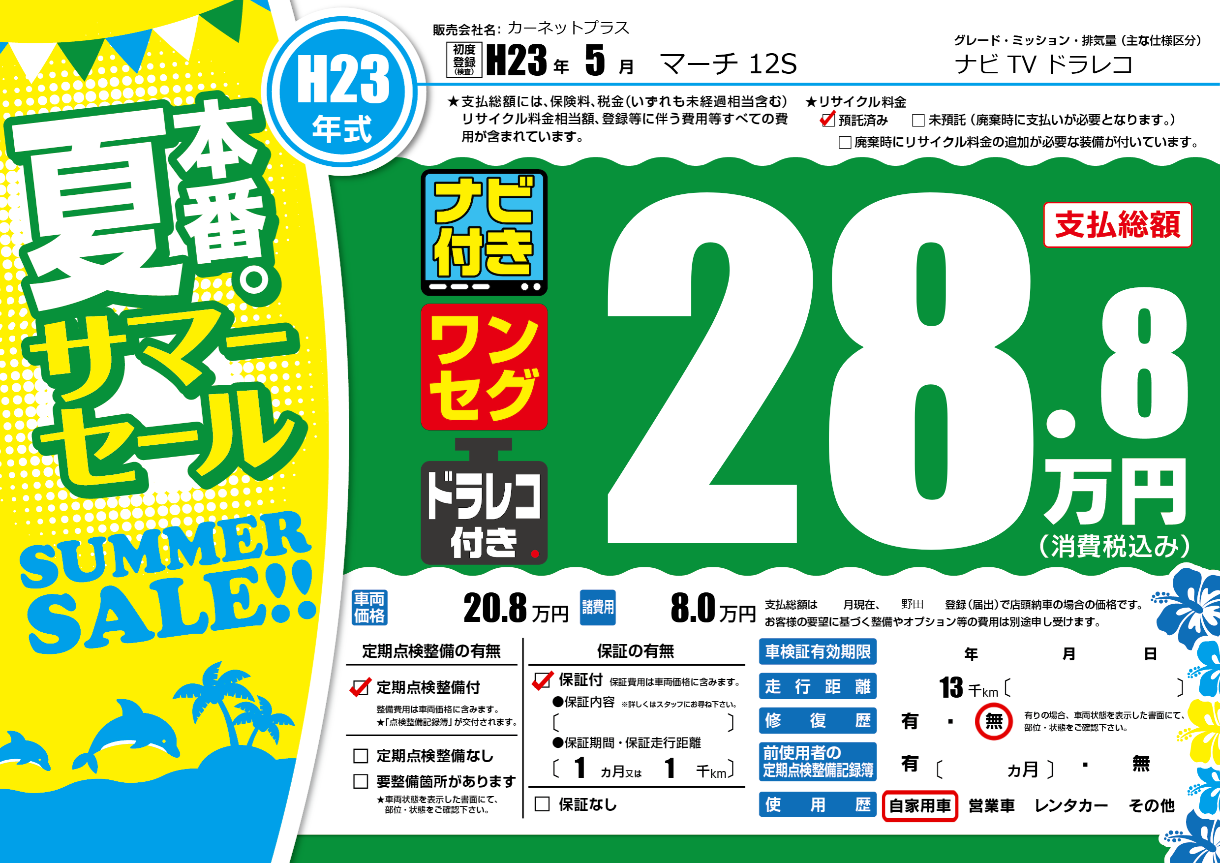 | 車名 | マーチ 12S | グレード ミッション 排気量 |