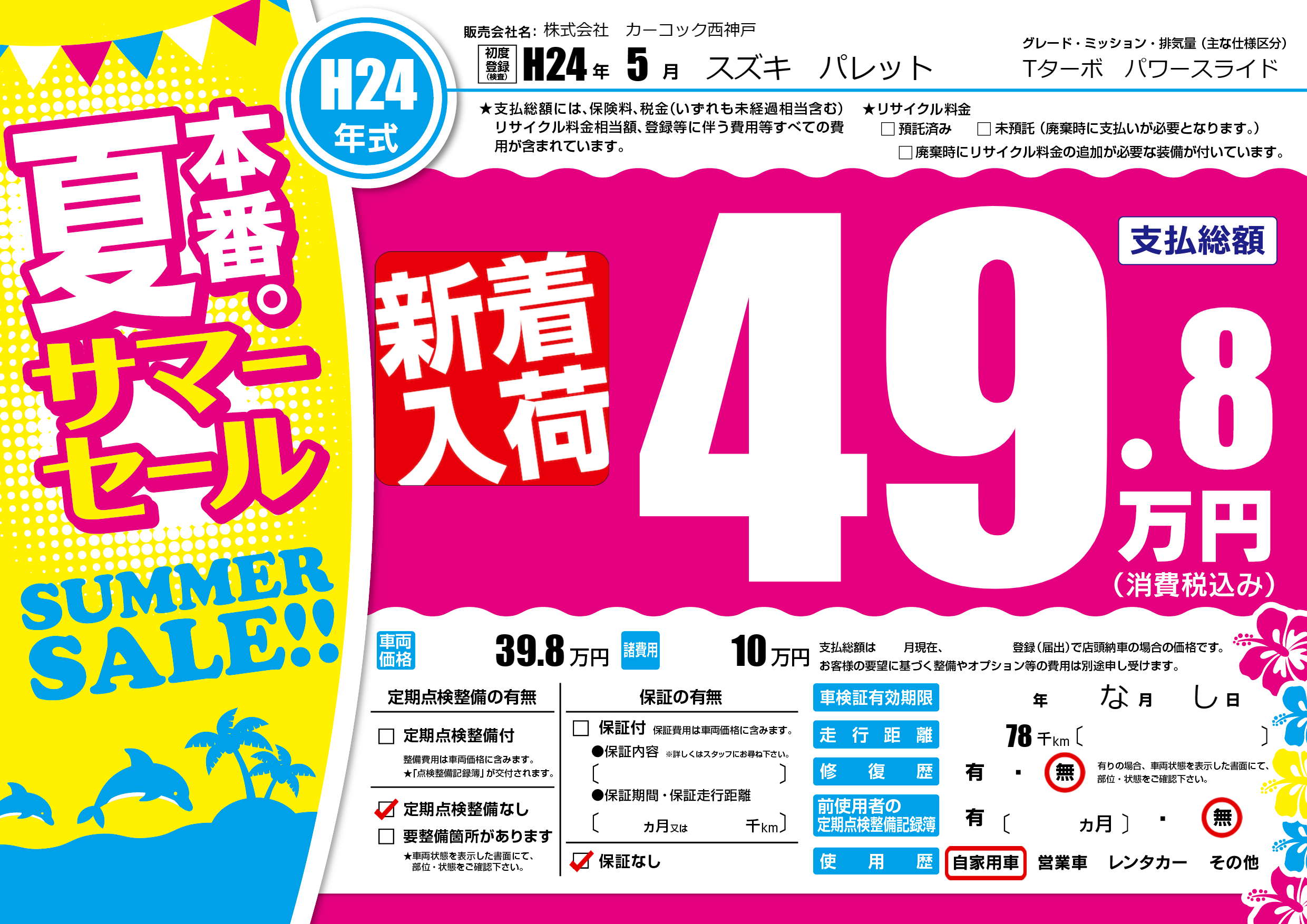 | 走行キロ | 7.8万km | 初年度登録 | H24年5月 |