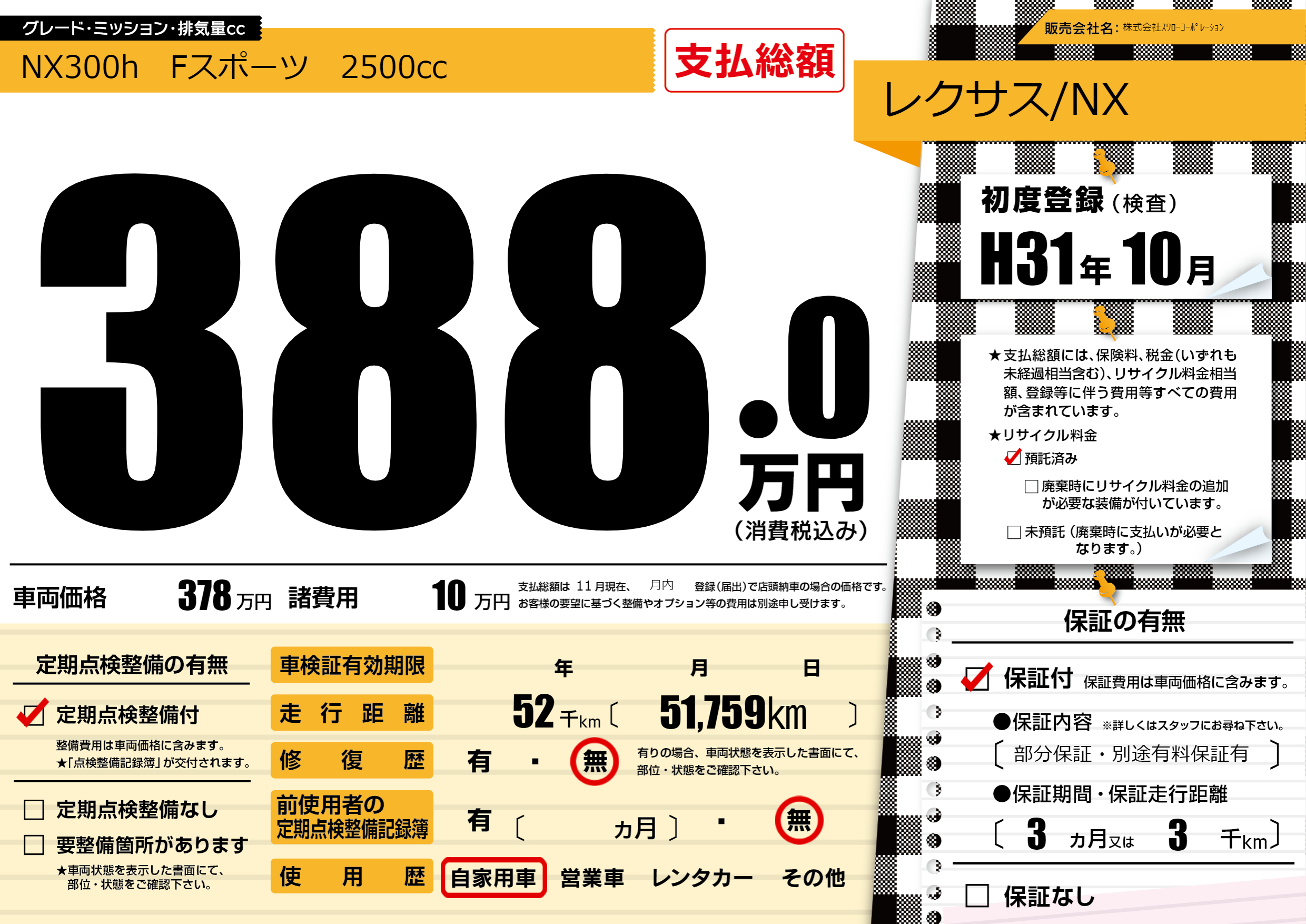 | 定期点検整備 | 定期点検整備あり | ||