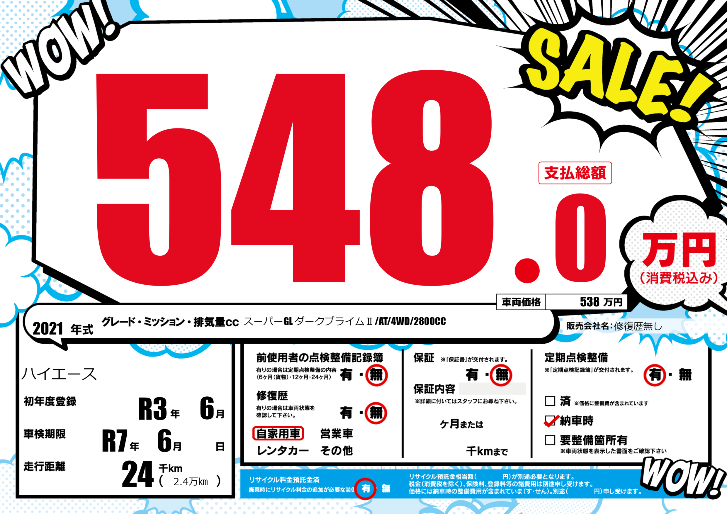 なし | 車検制限 | R7年6月---月 |
