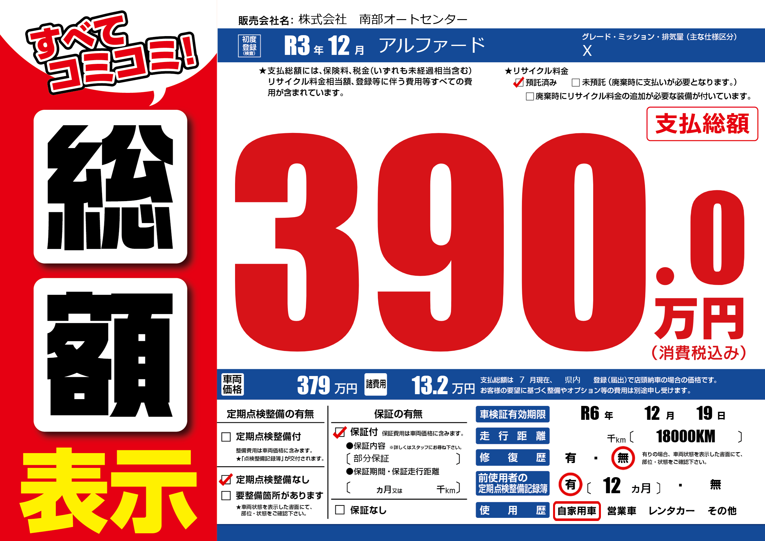| 車名 | アルファード | グレード ミッション 排気量 |
