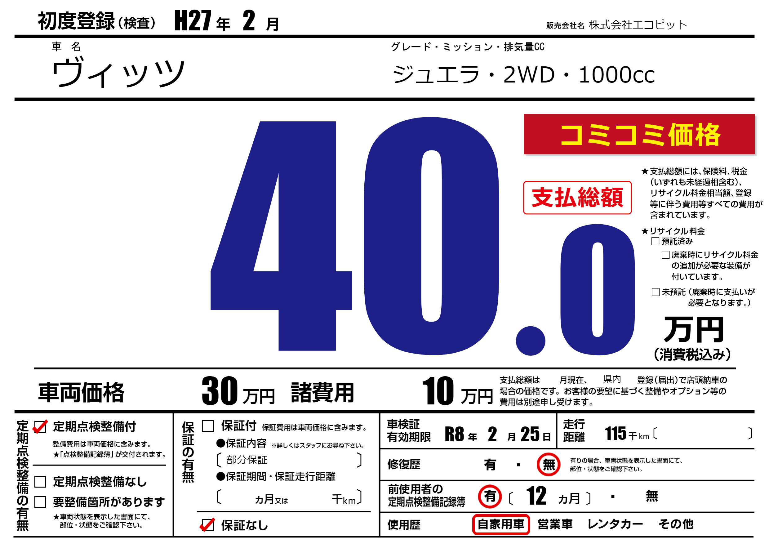 | 初年度登録 | H27年2月 | ||