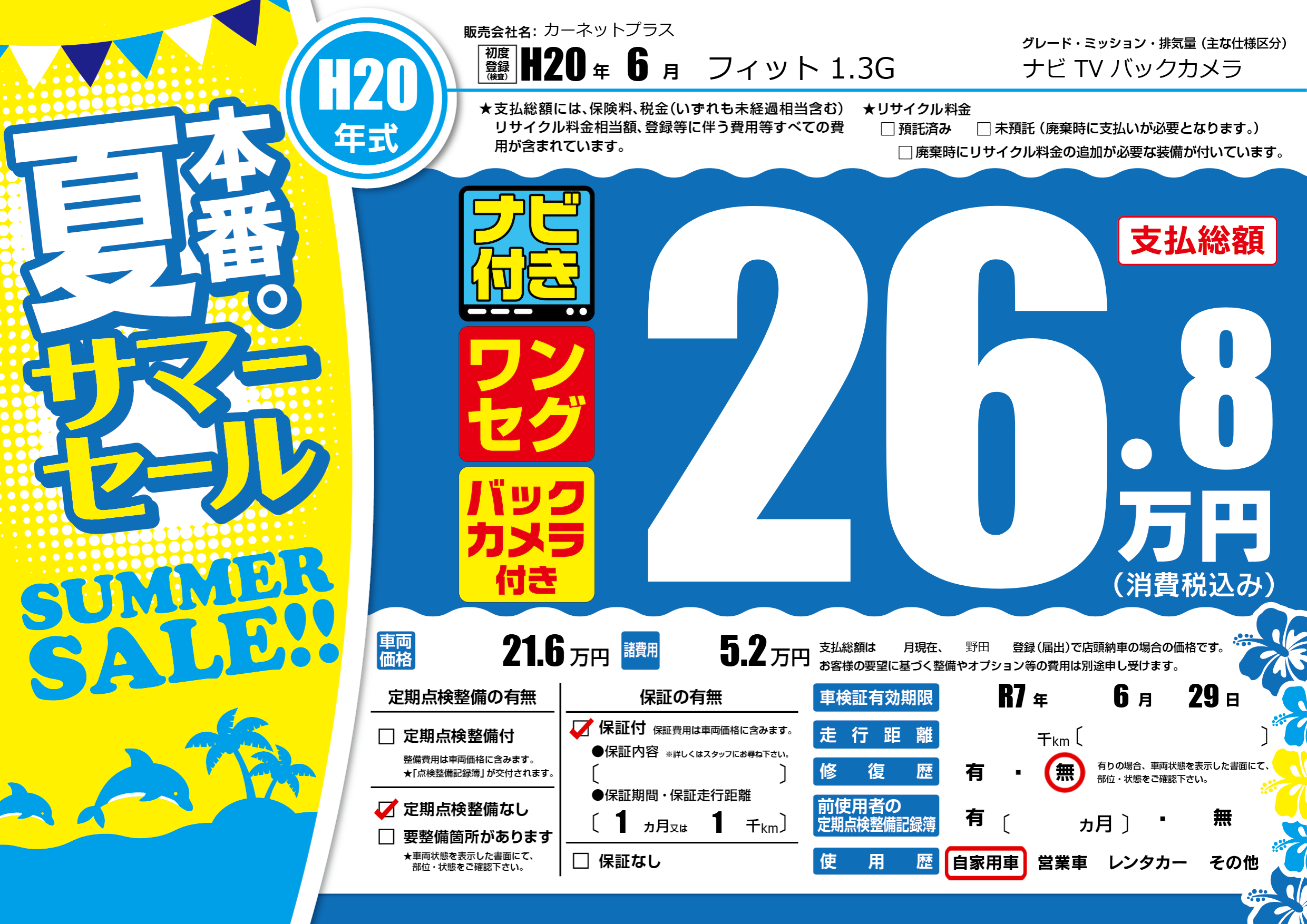 | 走行キロ | - | 初年度登録 | H20年6月 |
