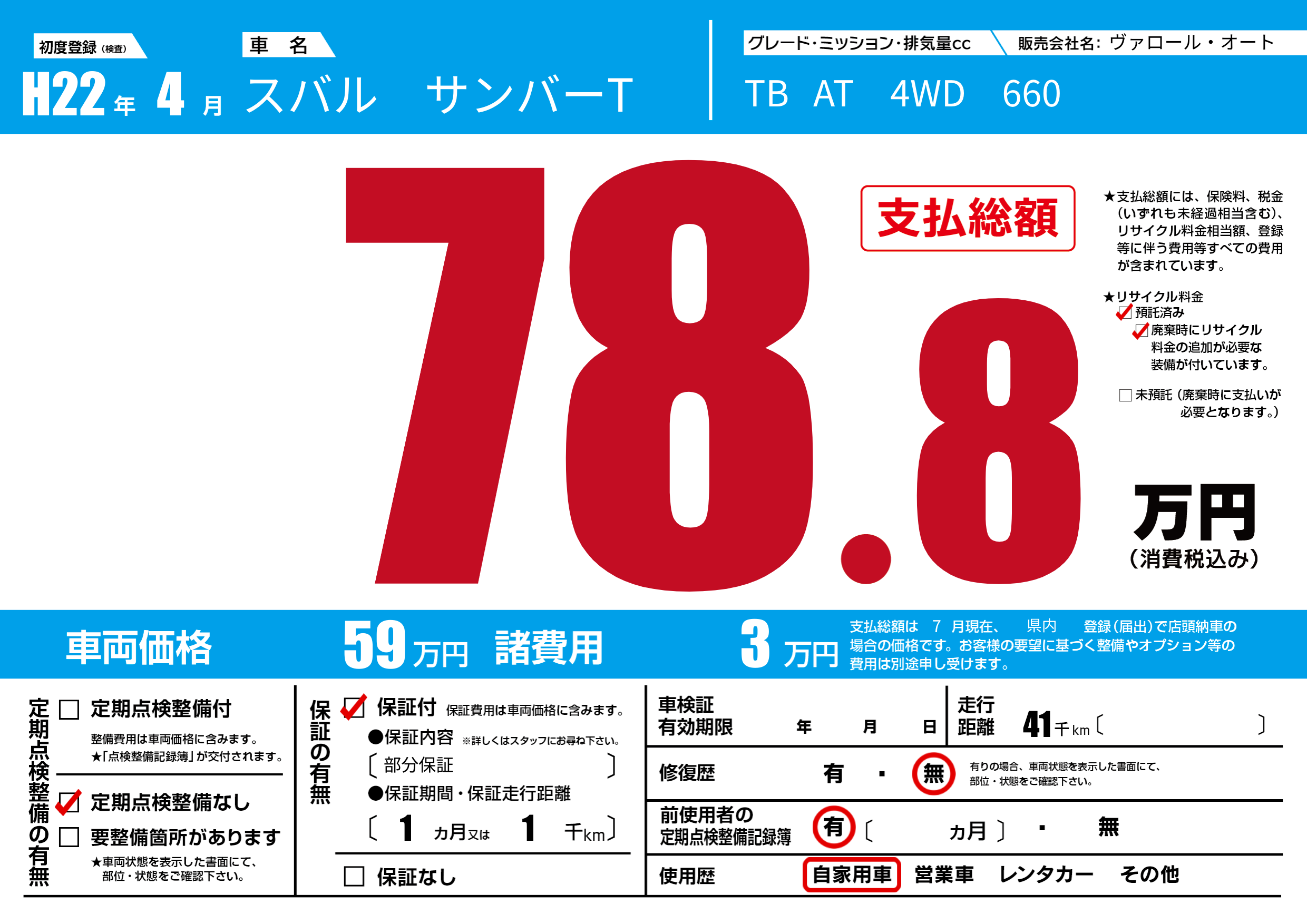 初年度登録 H22年4月