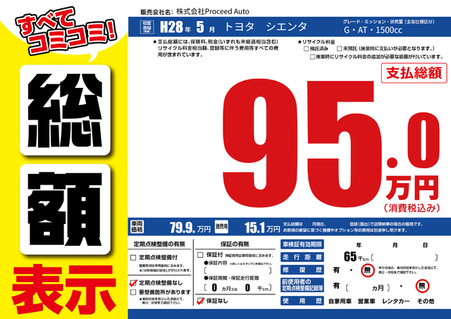 あり | リサイクル預託金相当額 | ( 0円)が別途必要 |