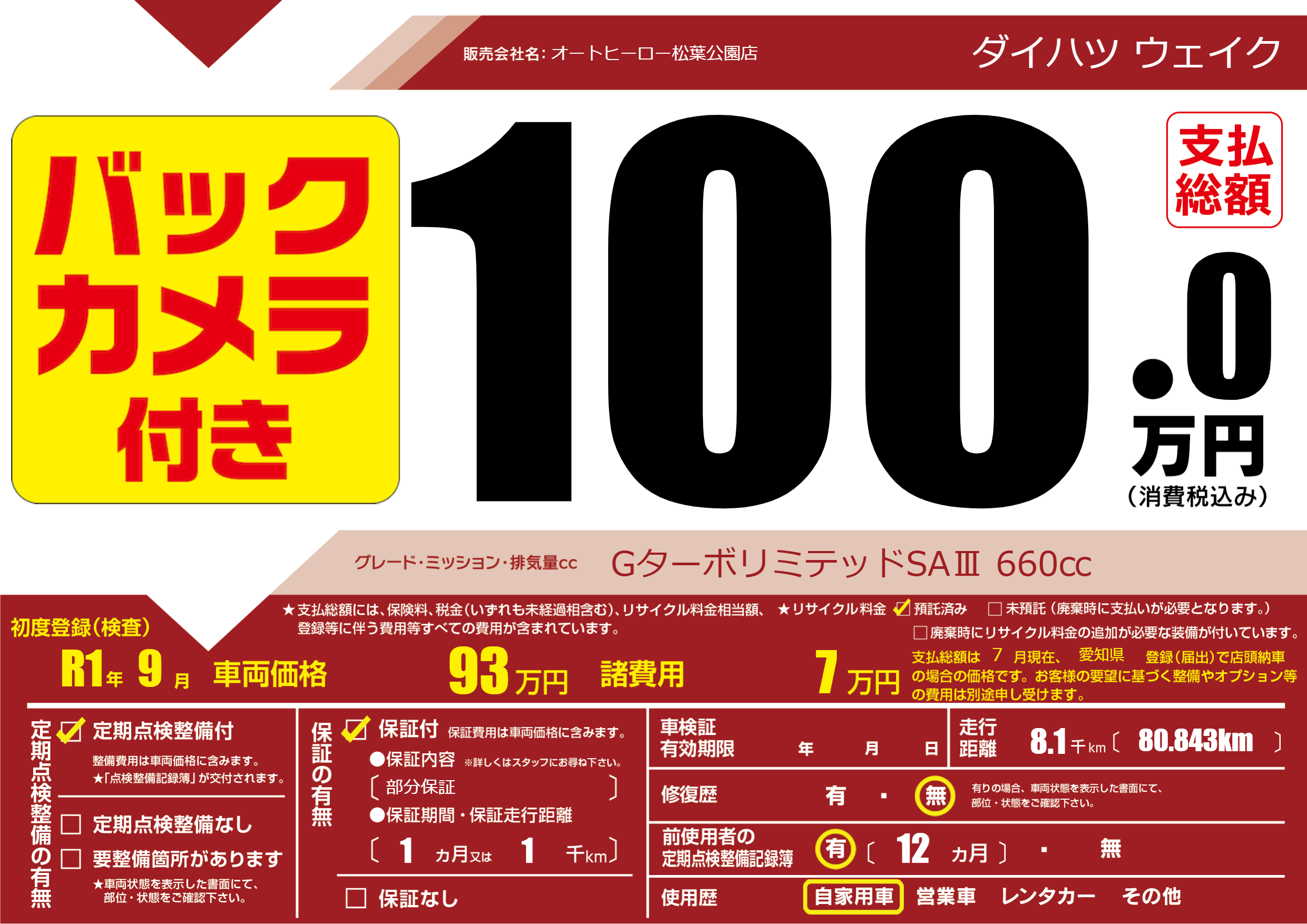 保証付き 保証内容(部分保証) 1ヶ月または(1)千kmまで |