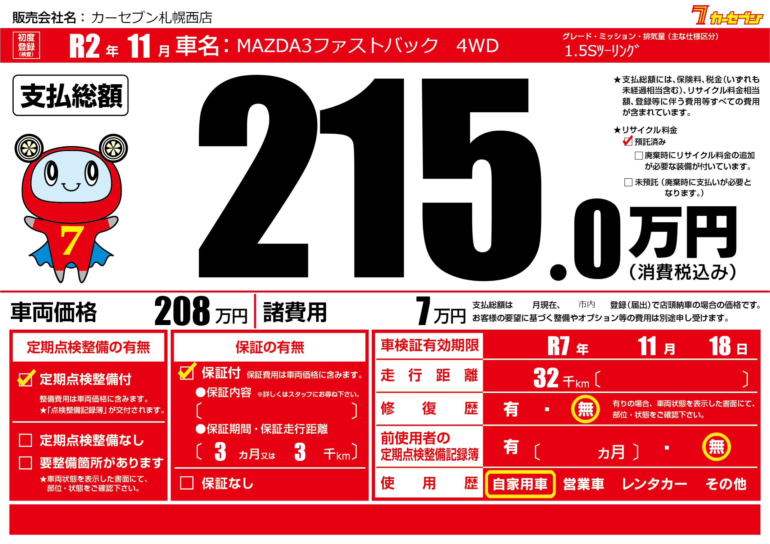 なし | 車検制限 | R7年11月18月 |